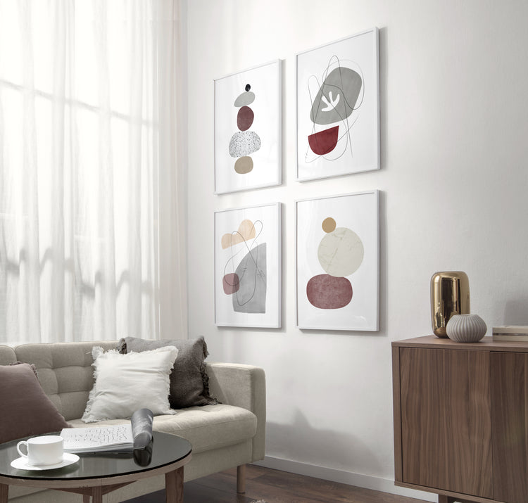 Ce tableau du style de nos tableaux géométrique, original de Nouveau Prints, avec pigments gris, et en portrait. Les formes géométriques et abstraites contribuent à créer une atmosphère légère et créative. Les murs décorés avec des tableaux sont un must
