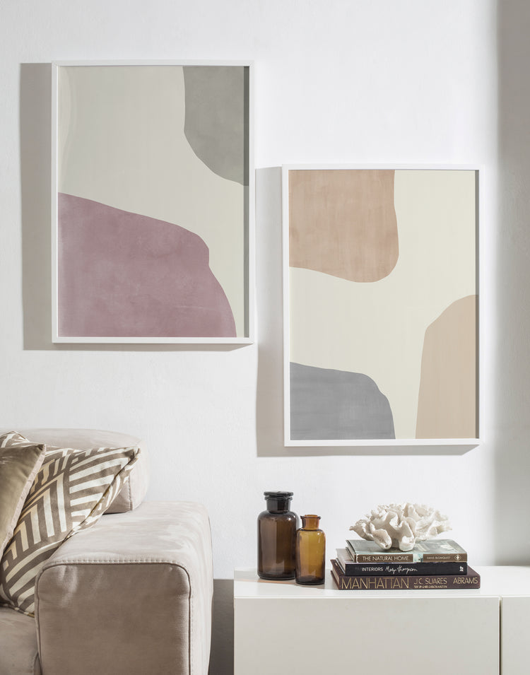 Une plaque de notre collection tableaux géométrique, de l'artiste Nouveau Prints, avec des touches beige, et pour mettre en position portrait. Cette œuvre aux formes abstraites est idéale à combiner avec les tableaux géométriques et l'art abstrait. Donnez une touche artistique à votre décoration.