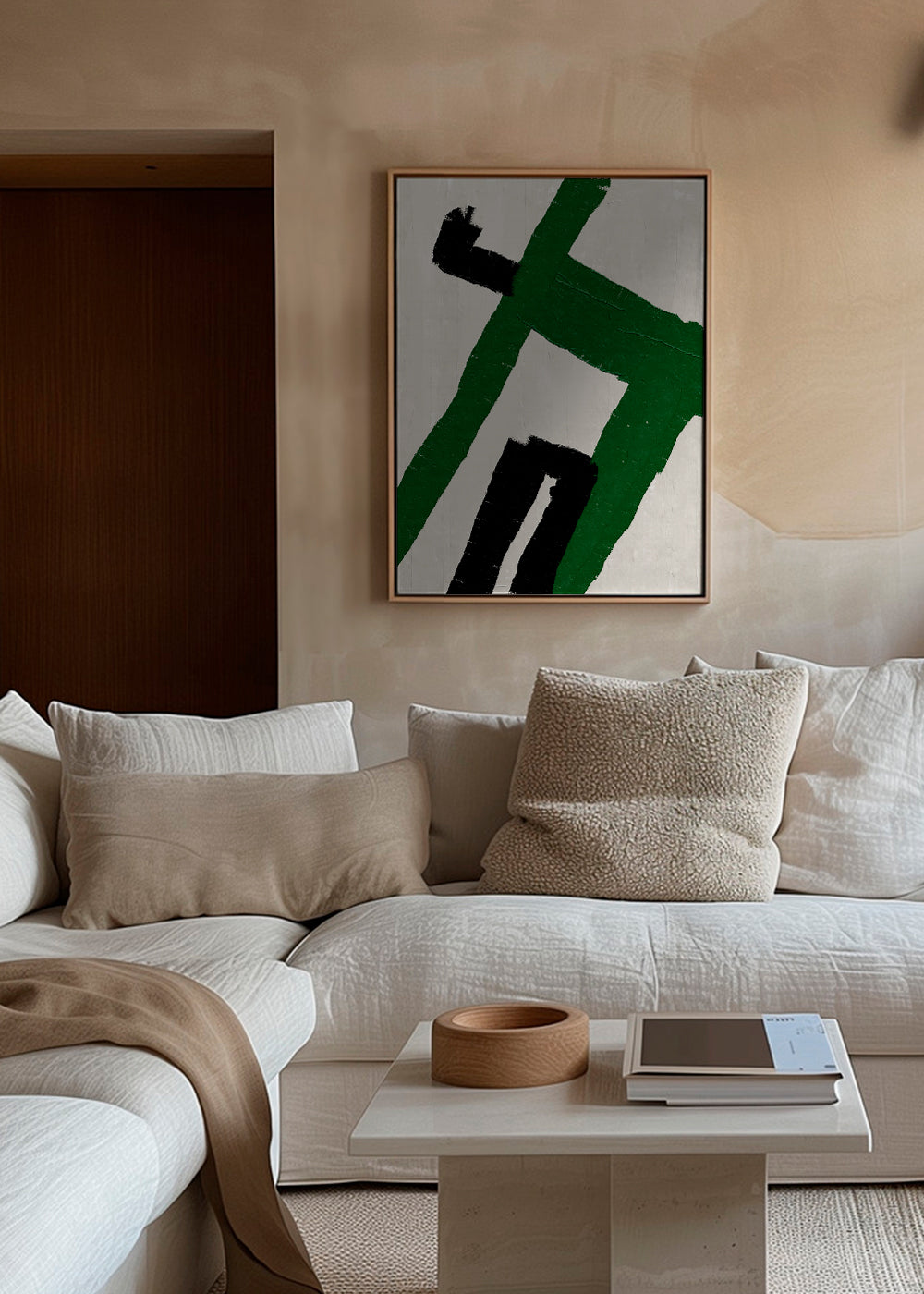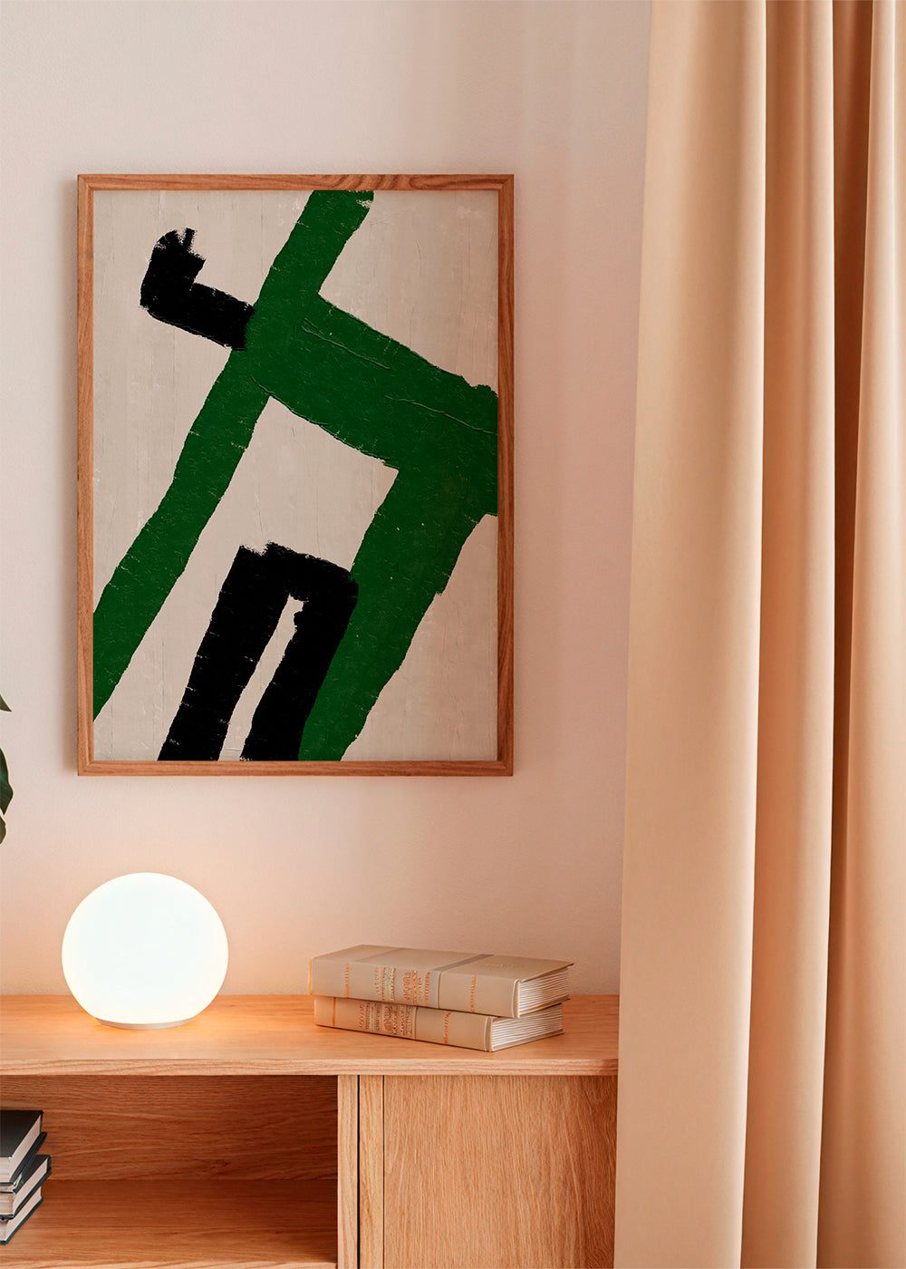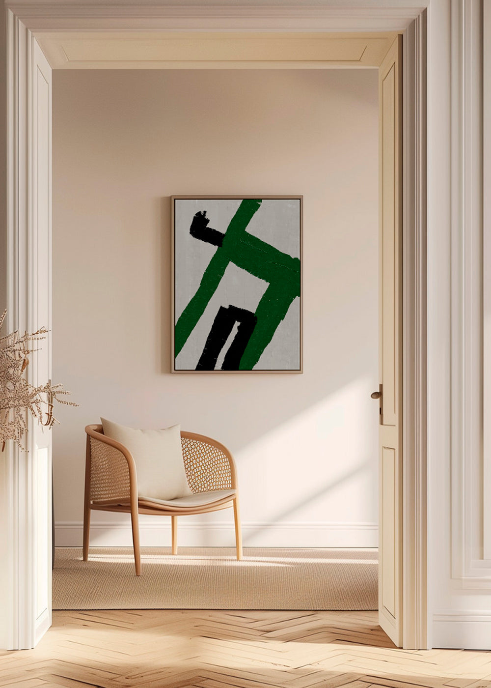 Ce poster avec l'inspiration dans la collection tableaux géométrique, original de 1x, en couleurs verts, et pour mettre en position portrait. Cette œuvre aux formes abstraites est idéale à combiner avec les tableaux géométriques et l'art abstrait. Créez un environnement unique.