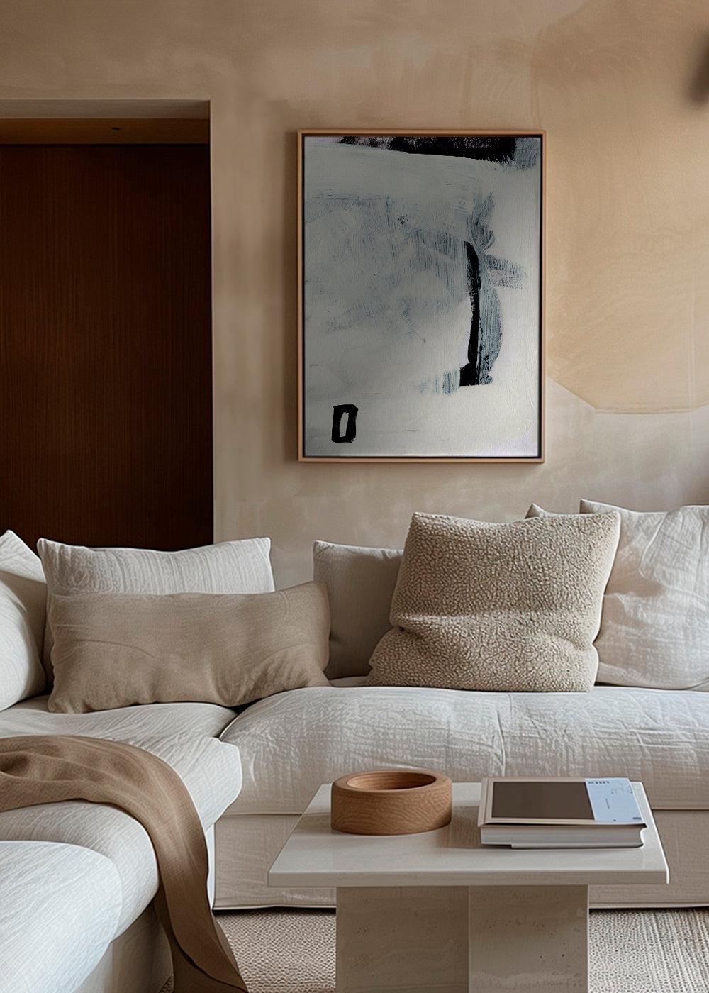 Un tableau de notre collection tableaux abstraits, de la collection de l'artiste 1x, avec des nuances de couleurs gris, et pour mettre en position portrait. Les tableaux abstraits sont parfaits pour créer des espaces uniques et créatifs. Les murs décorés avec des tableaux sont un must