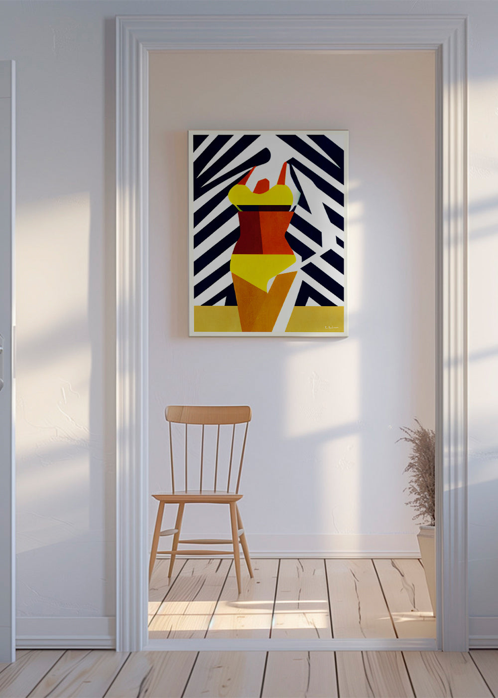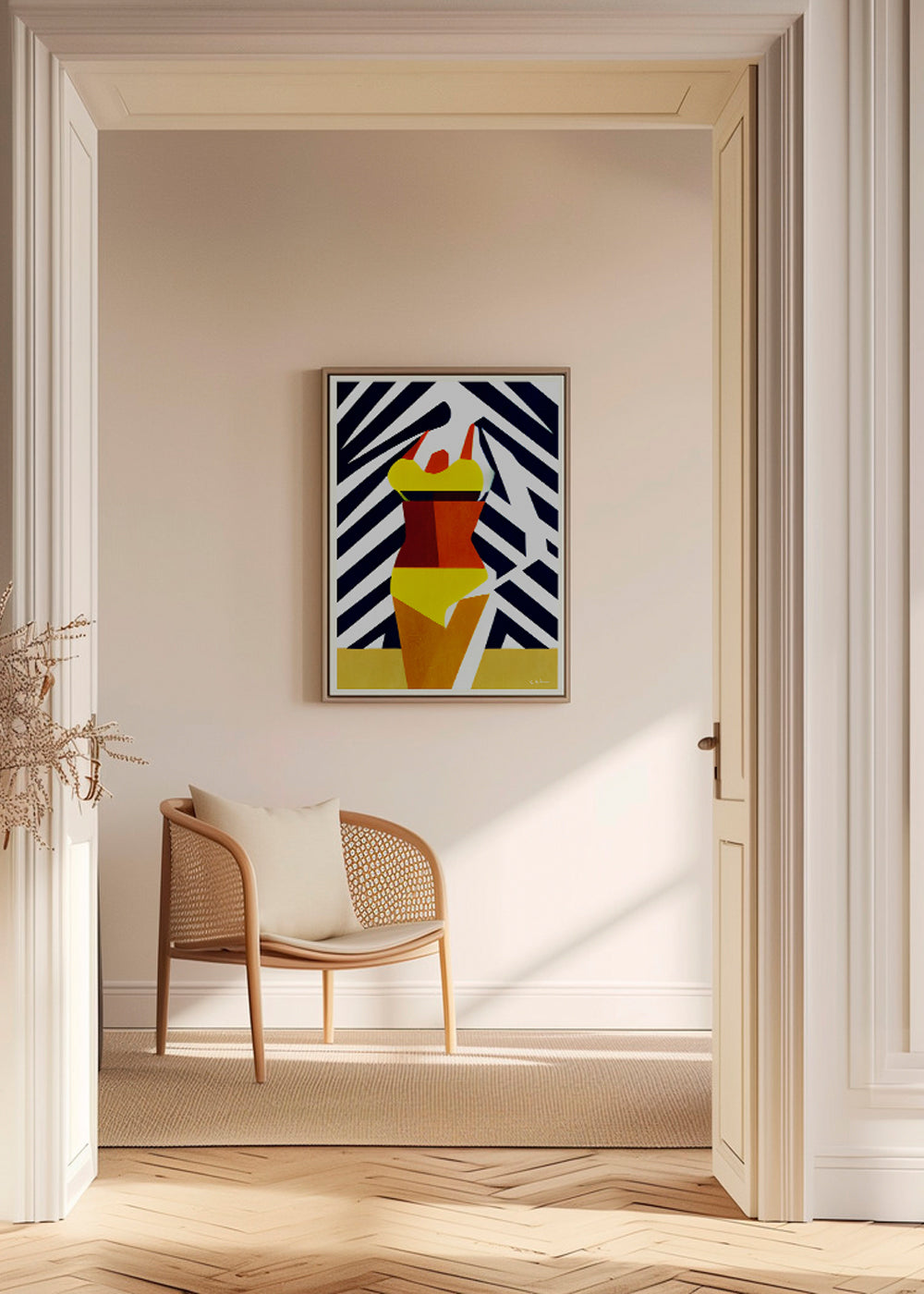 Une image appartenant à la catégorie posters femme, de l'artiste Bo Anderson, avec les couleurs jaunes, et avec orientation portrait. Si vous cherchez un élément rétro à ajouter à votre décoration, cette option est idéale. Combinez-la avec d'autres posters vintage pour un style super original. Élégance inspirée par l'art.