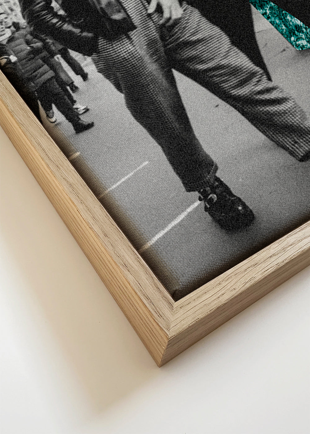 Si vous sélectionnez l'option passe-partout, nous ajouterons le tableau blanc mat au cadre, et nous réduirons le dessin de l'œuvre. Par exemple, si vous sélectionnez un tirage au format 50x70 cm, avec un cadre et un passe-partout couleur chêne, nous réduirons le dessin du tirage au format précédent (40x50cm). Ainsi, il s'adaptera parfaitement à la fenêtre intérieure du passe-partout.