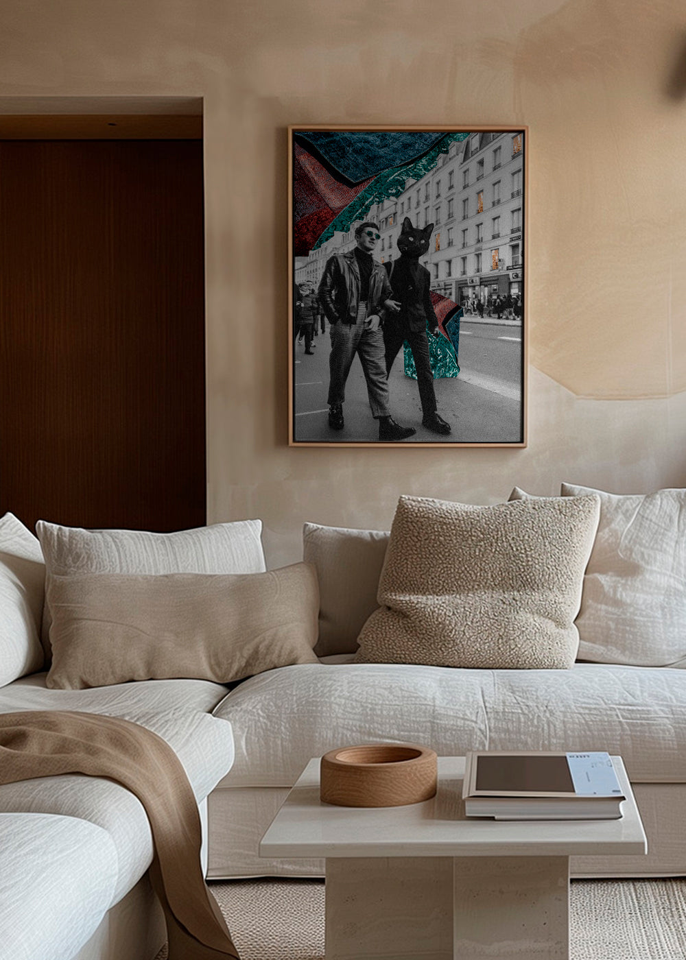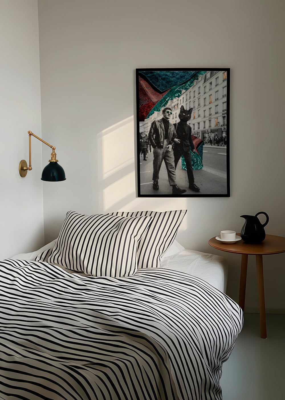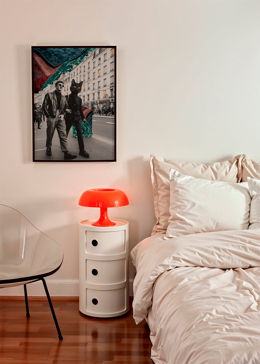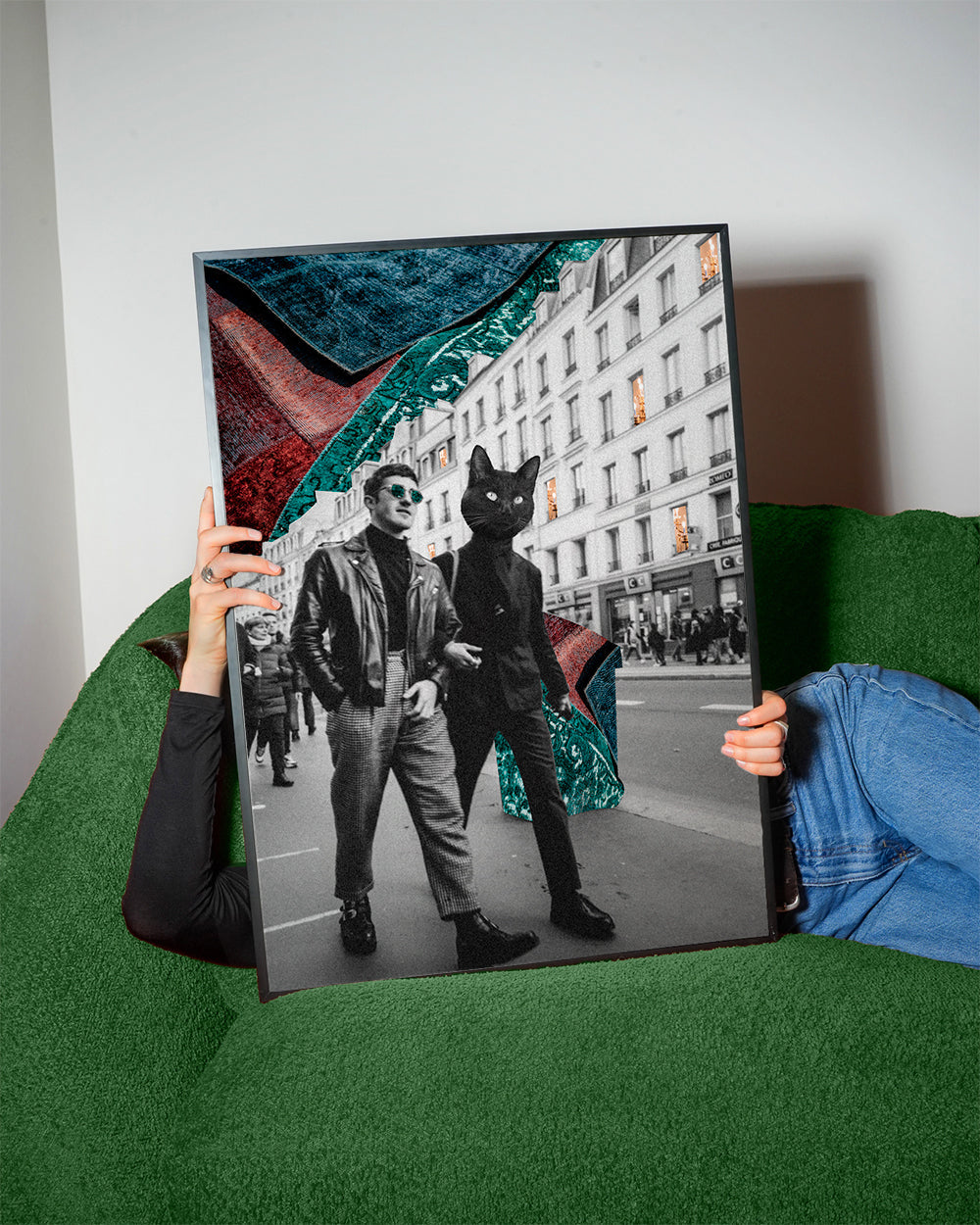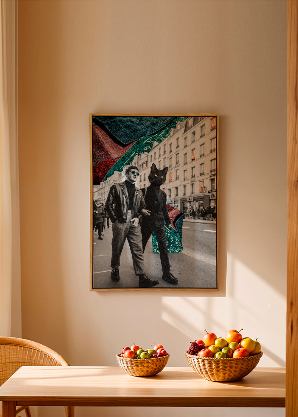 Le passe-partout est un panneau blanc mat qui entoure l'affiche pour la protéger du méthacrylate, et qui améliore également l'expressivité de l'œuvre et met en valeur ses détails.
