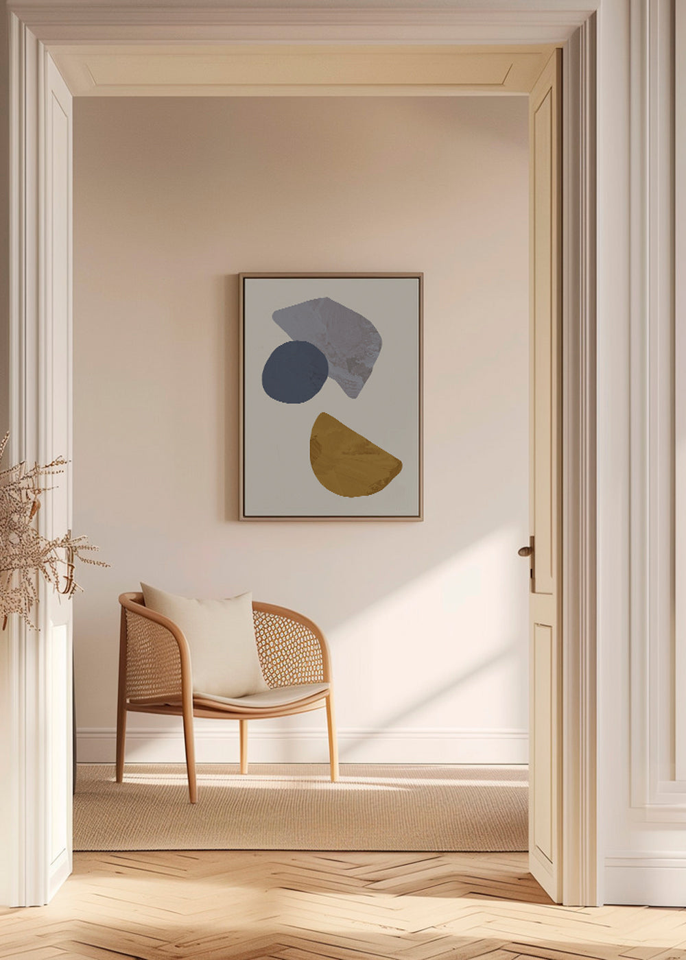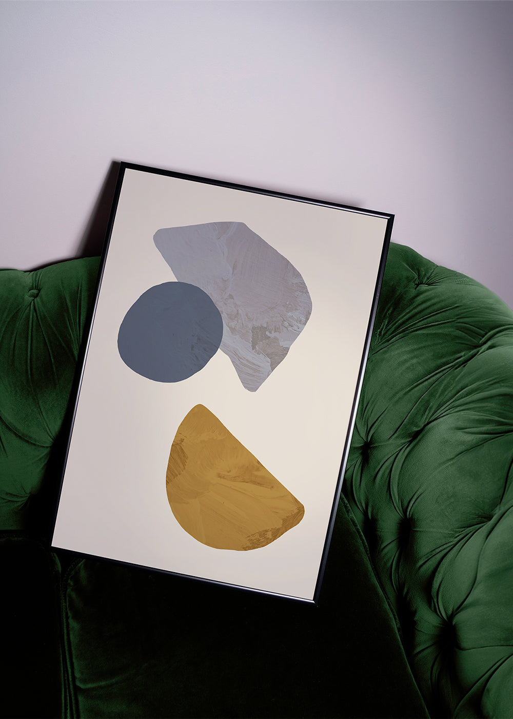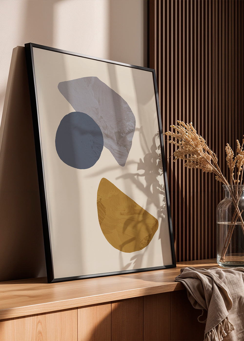 Ce affiche de la série tableaux géométrique, avec les couleurs bleus, et pour mettre en position portrait. L'art géométrique est un style élégant pour décorer les murs de la maison. Ajoutez un peu d'art à la décoration de votre maison.