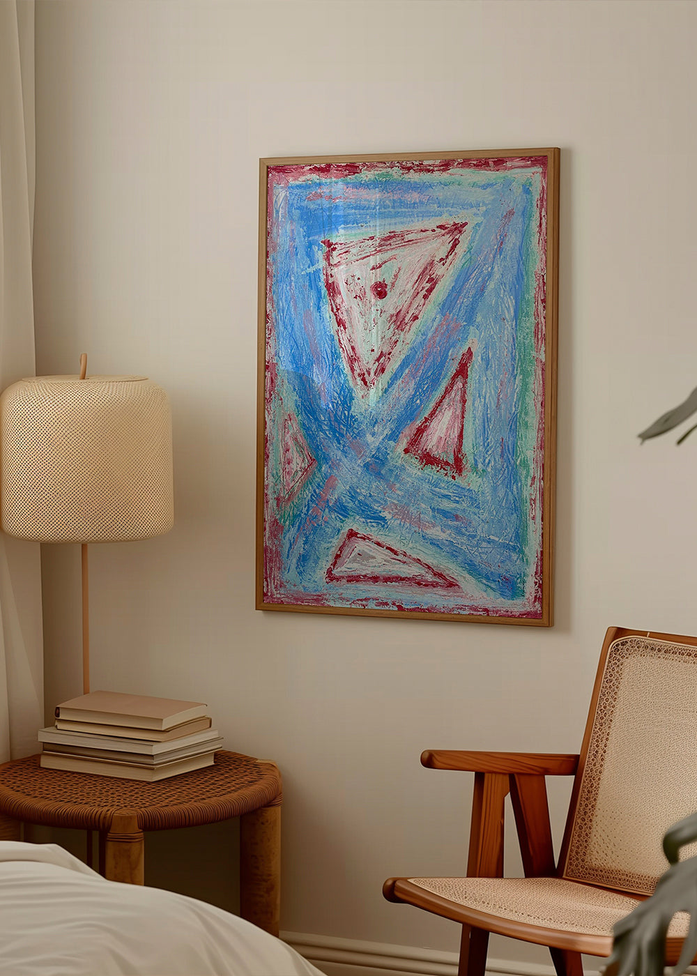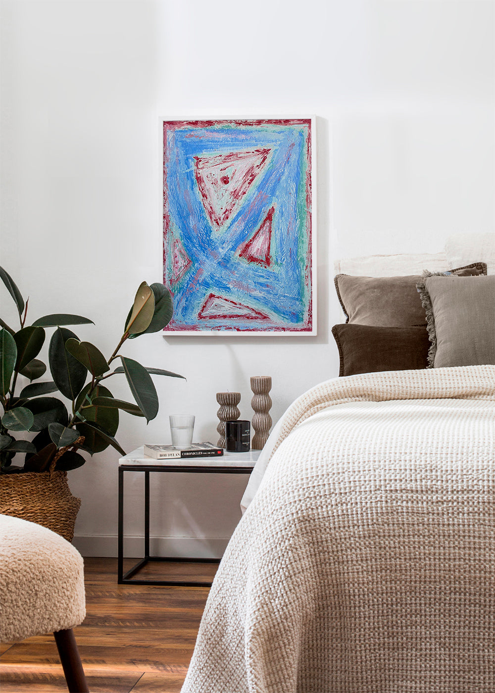 Un poster de la série tableaux abstraits, faite par Elena Camacho Art, avec pigments bleus, et avec orientation portrait. C'est une œuvre d'art abstraite qui donnera une touche moderne au design de vos espaces. Les murs d’une maison habillent cette dernière.