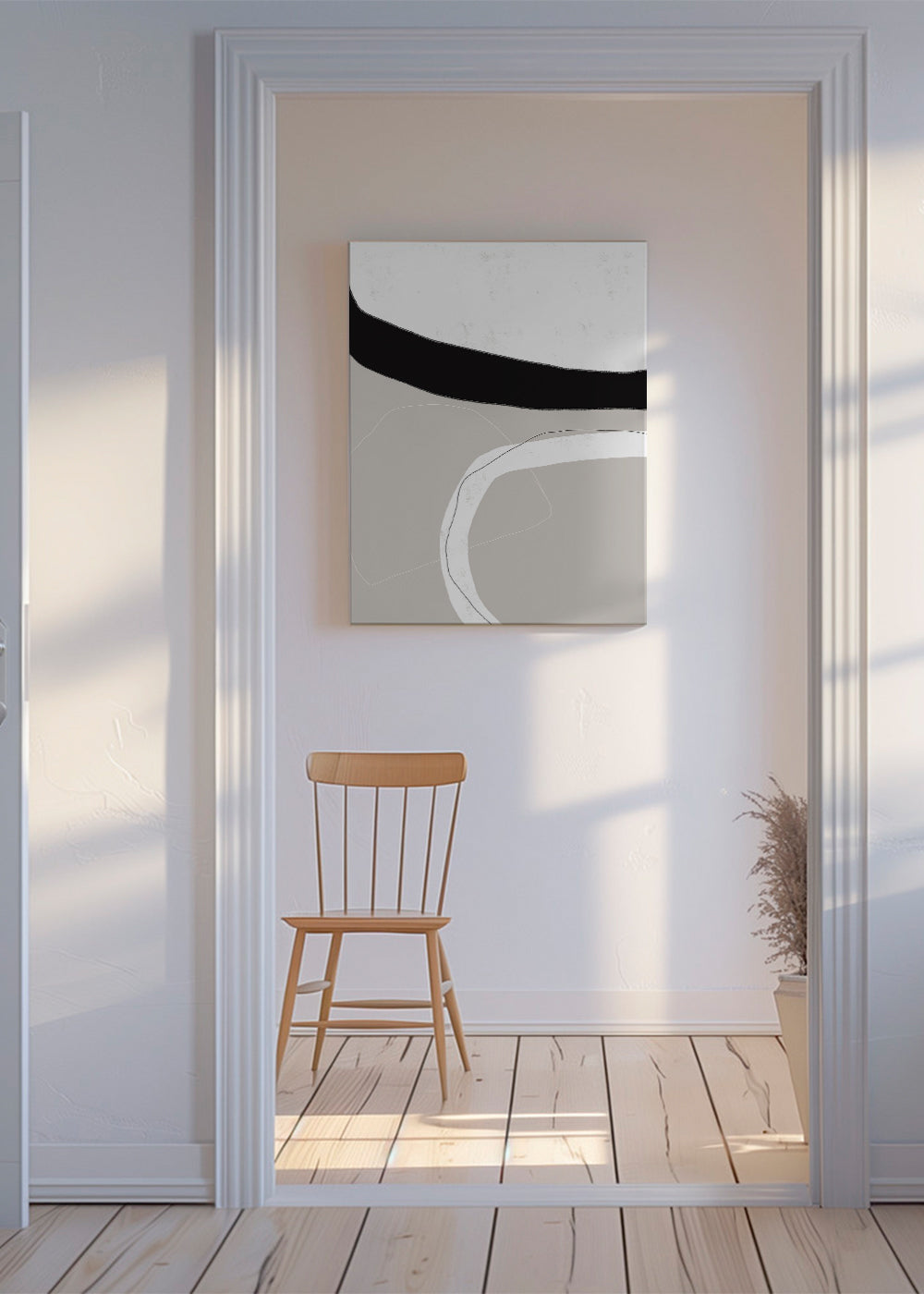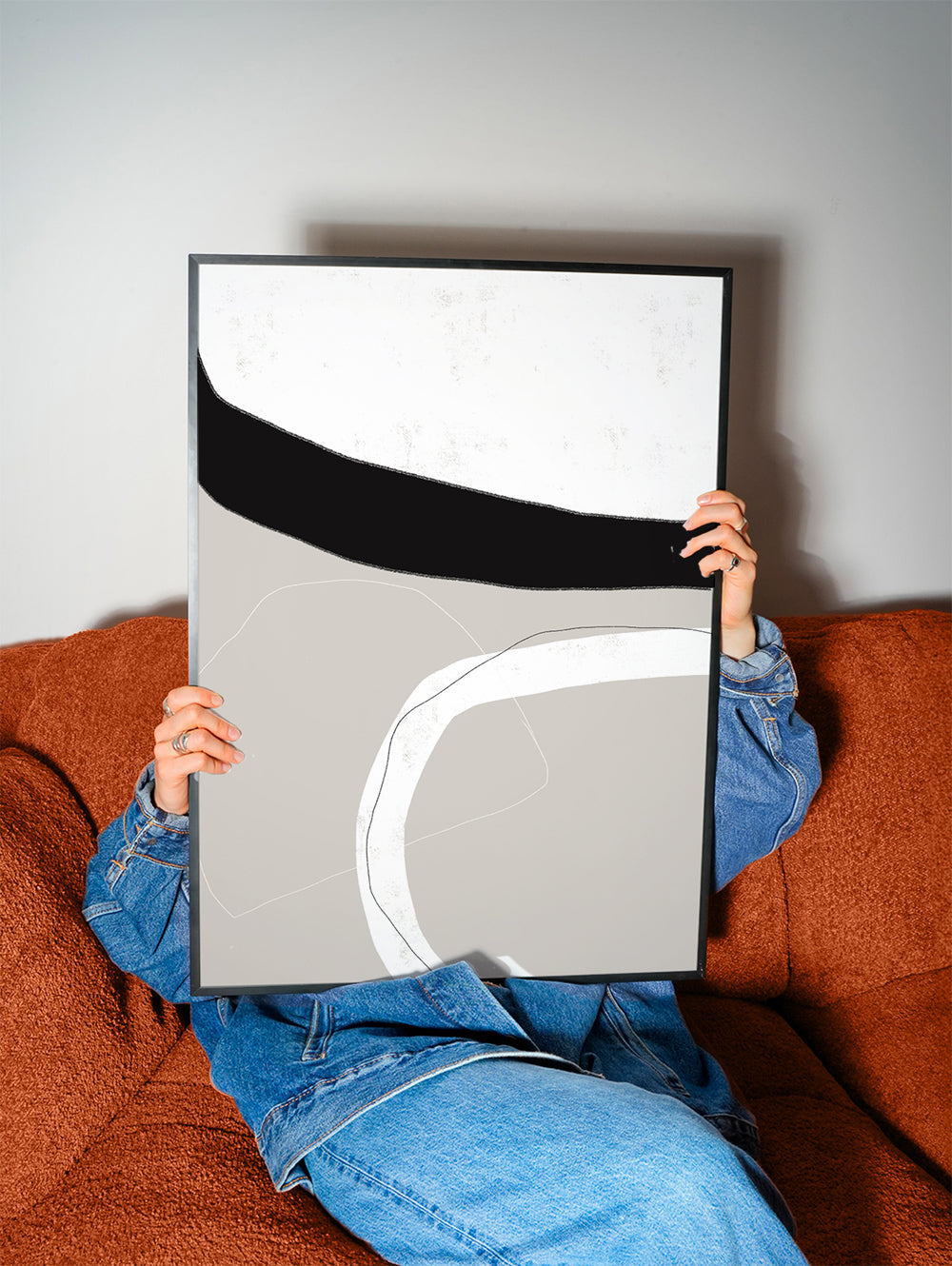 Beau affiche de notre catégorie tableaux abstraits, de la collection de l'artiste U + Me Studio, avec des tonalités noirs, et pour mettre en orientation portrait. Ce modèle est parfait pour la décoration d'espaces modernes. Combinez-le avec d'autres tableaux abstraits pour obtenir une décoration d'avant-garde. Habillez les murs de votre maison.
