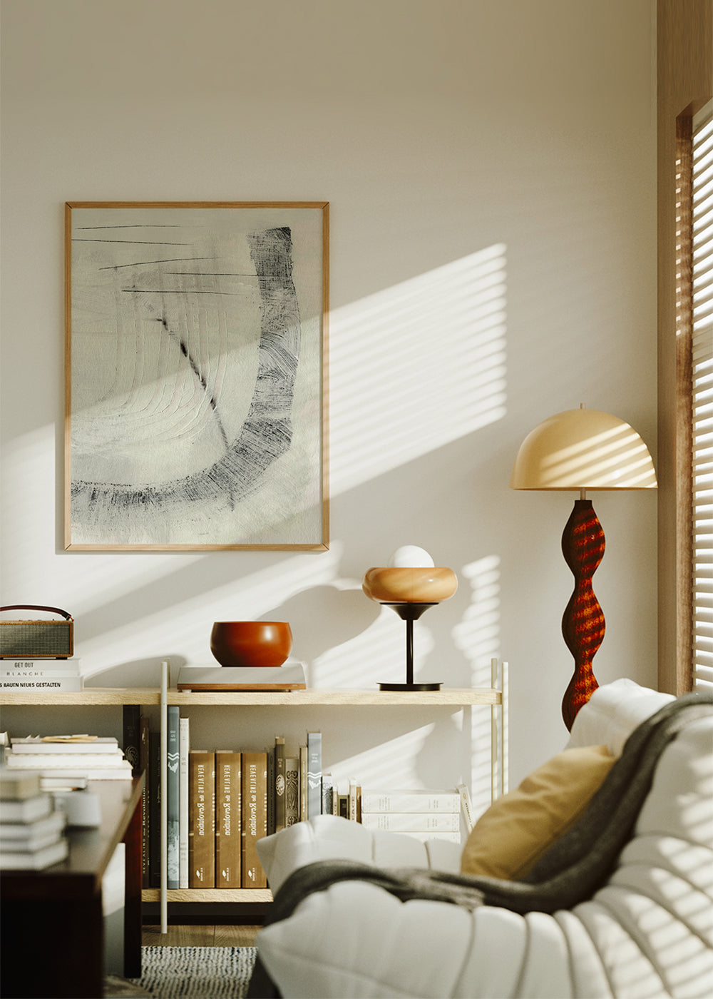 Le passe-partout est un panneau blanc mat qui entoure l'affiche pour la protéger du méthacrylate, et qui améliore également l'expressivité de l'œuvre et met en valeur ses détails.