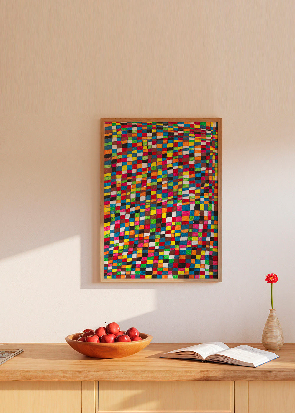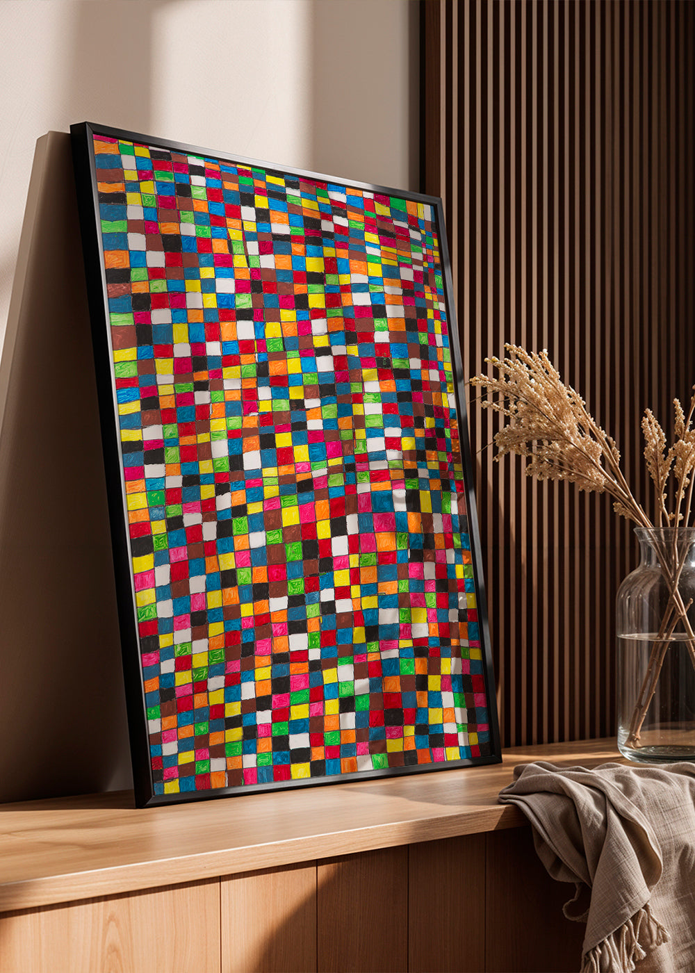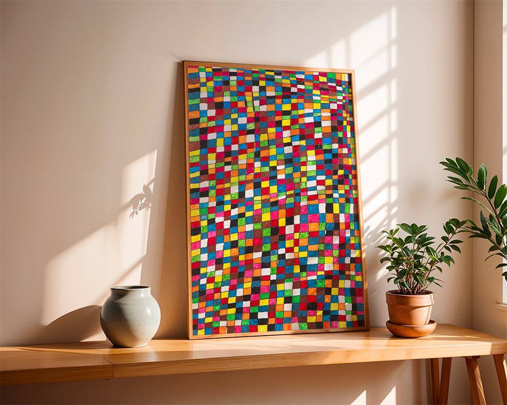 Un affiche de la série tableaux géométrique, original de Fundació Setba, avec des nuances de tons multicolores, et dans une orientation vers un portrait. L'art géométrique est un style élégant pour décorer les murs de la maison. Donnez un nouveau look à votre décoration intérieure.