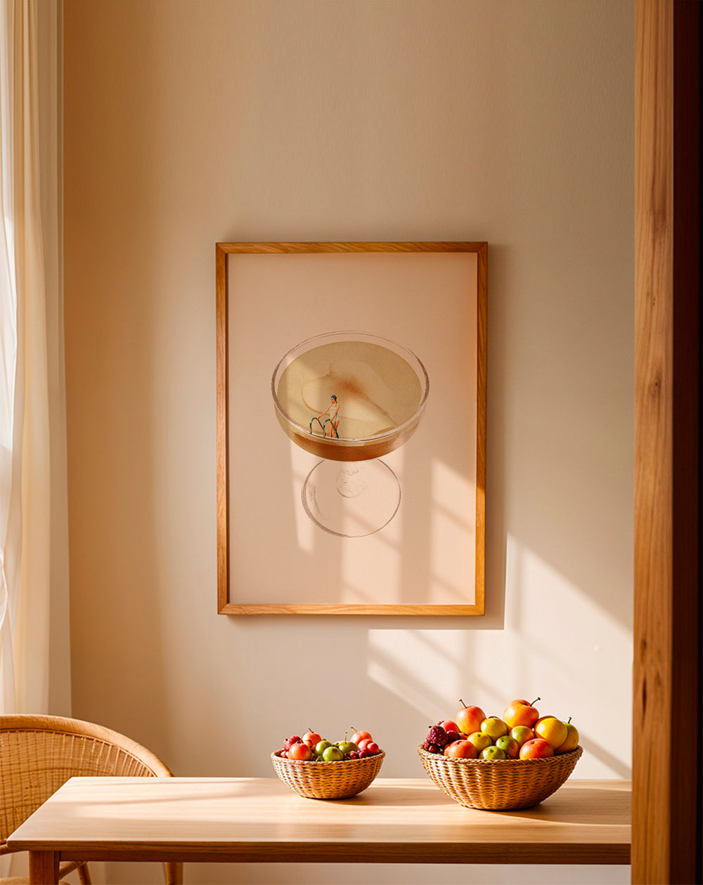 Si vous sélectionnez l'option passe-partout, nous ajouterons le tableau blanc mat au cadre, et nous réduirons le dessin de l'œuvre. Par exemple, si vous sélectionnez un tirage au format 50x70 cm, avec un cadre et un passe-partout couleur chêne, nous réduirons le dessin du tirage au format précédent (40x50cm). Ainsi, il s'adaptera parfaitement à la fenêtre intérieure du passe-partout.
