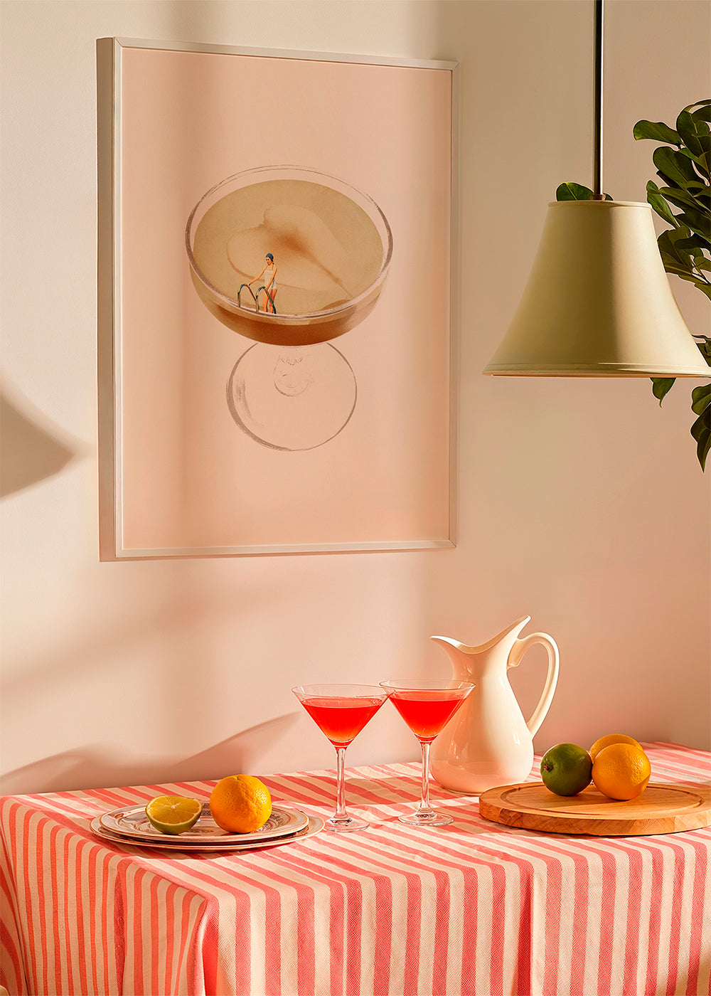 Le passe-partout est un panneau blanc mat qui entoure l'affiche pour la protéger du méthacrylate, et qui améliore également l'expressivité de l'œuvre et met en valeur ses détails.