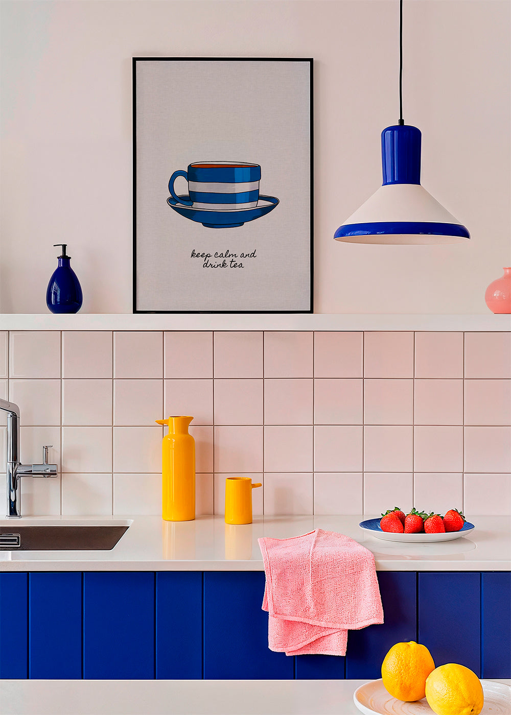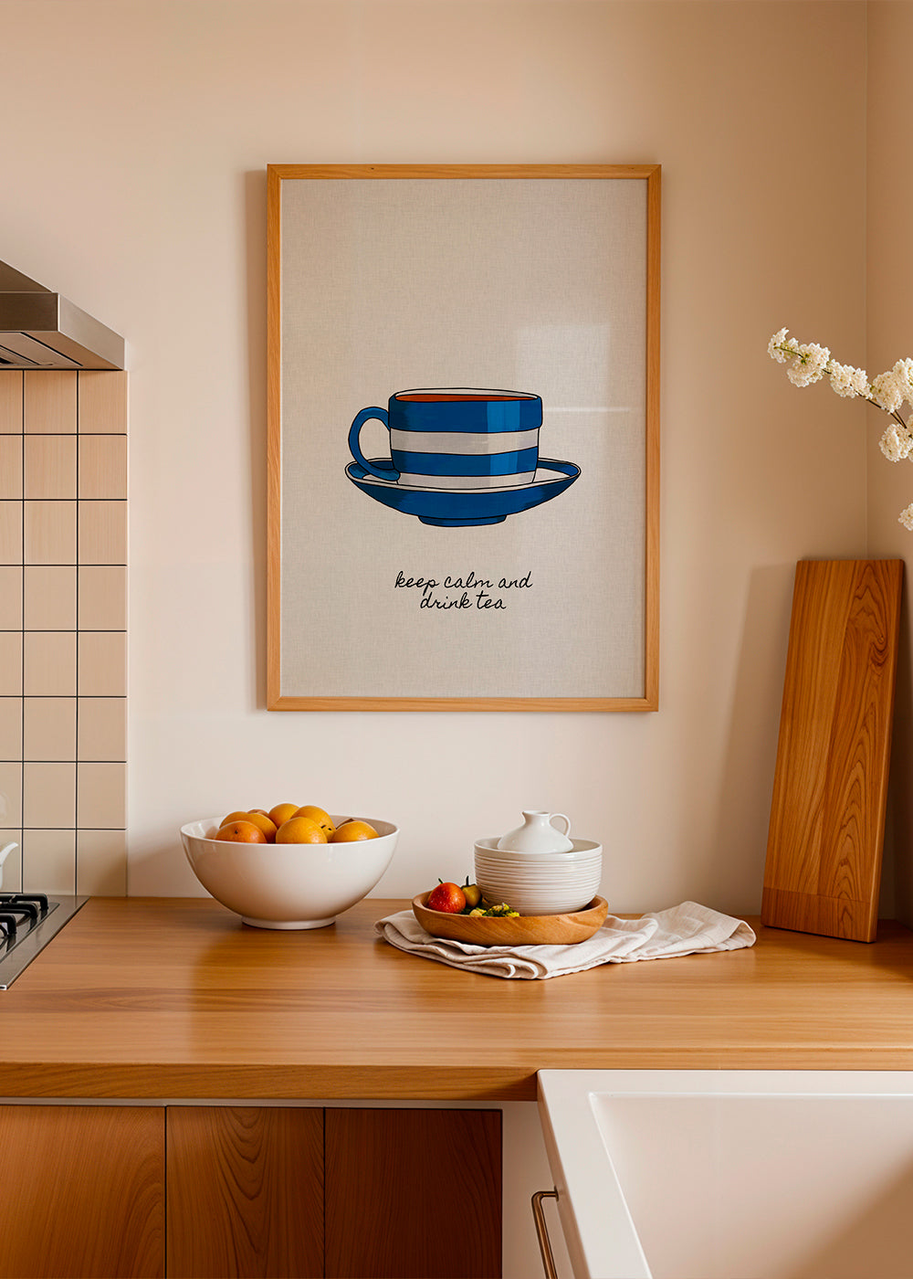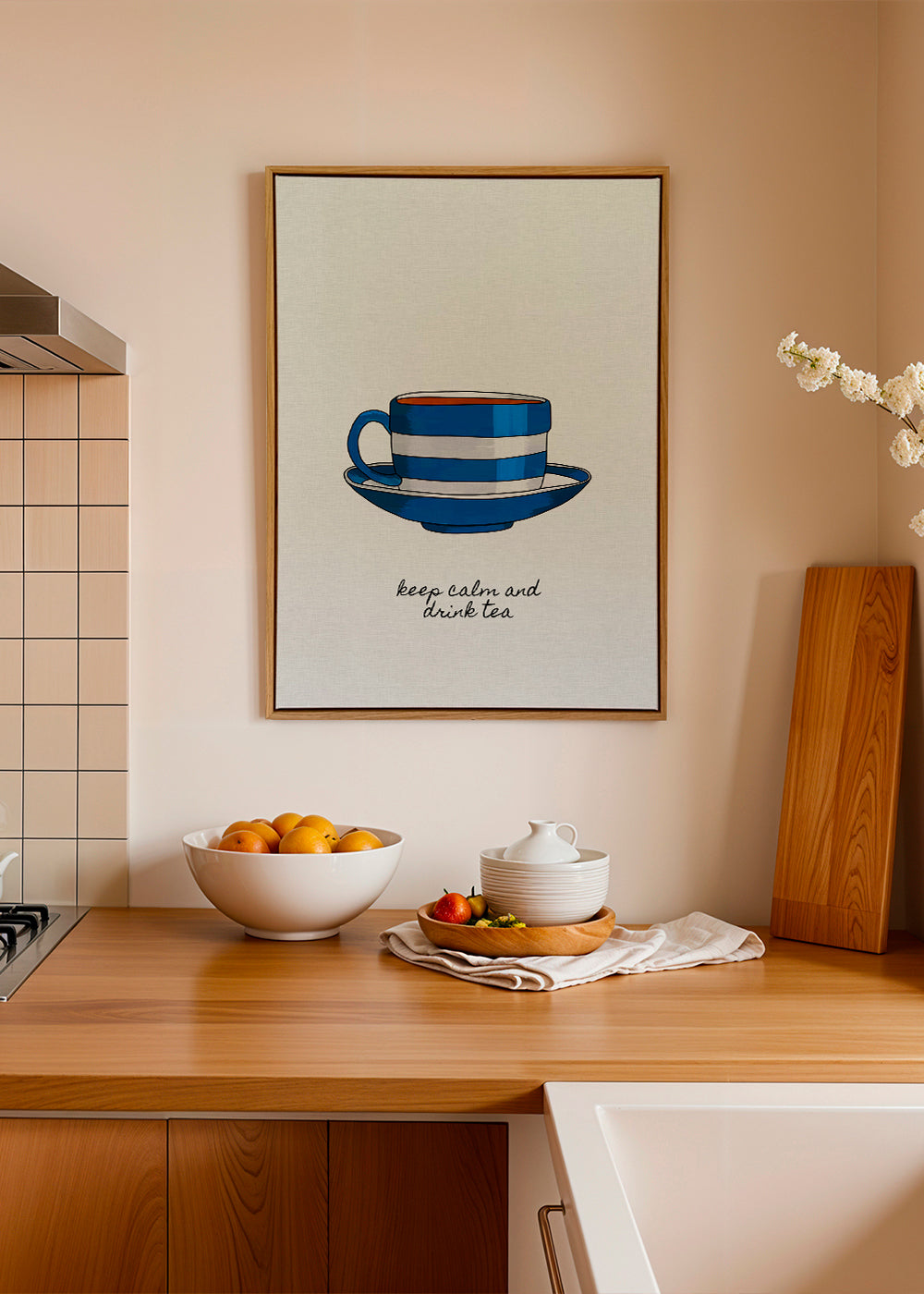 Cette pièce appartenant à la catégorie affiches café, conçue par Orara Studio, avec des touches bleus, et en position portrait. La cuisine peut aussi être un endroit amusant, laissez nos affiches de cuisine éveiller votre côté culinaire. Créez votre espace préféré.