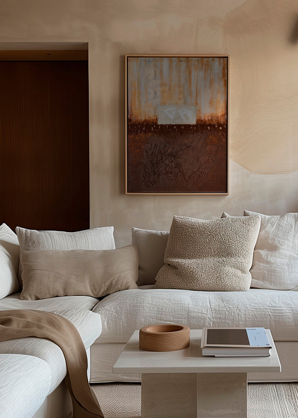 Un poster de notre catégorie tableaux abstraits, appartenant à la collection de Elena Camacho Art, avec des tonalités bruns, et en portrait. Si vous avez besoin d'ajouter de l'originalité et du style à votre décoration, ce modèle abstrait vous aidera à donner une touche d'avant-garde aux murs de votre maison. Ajoutez un peu d'art à la décoration de votre maison.