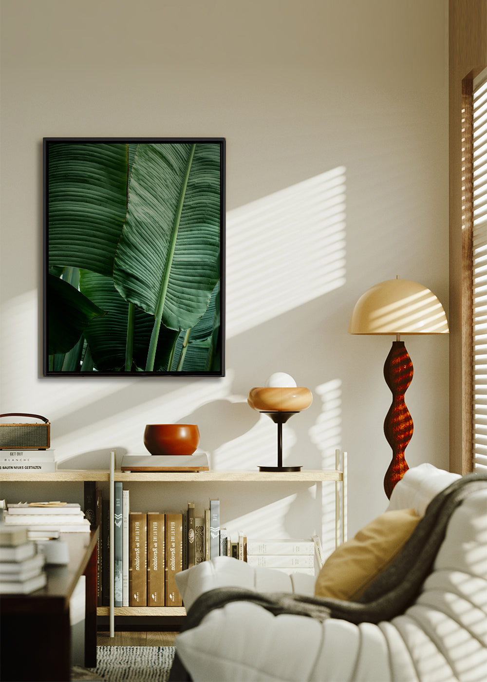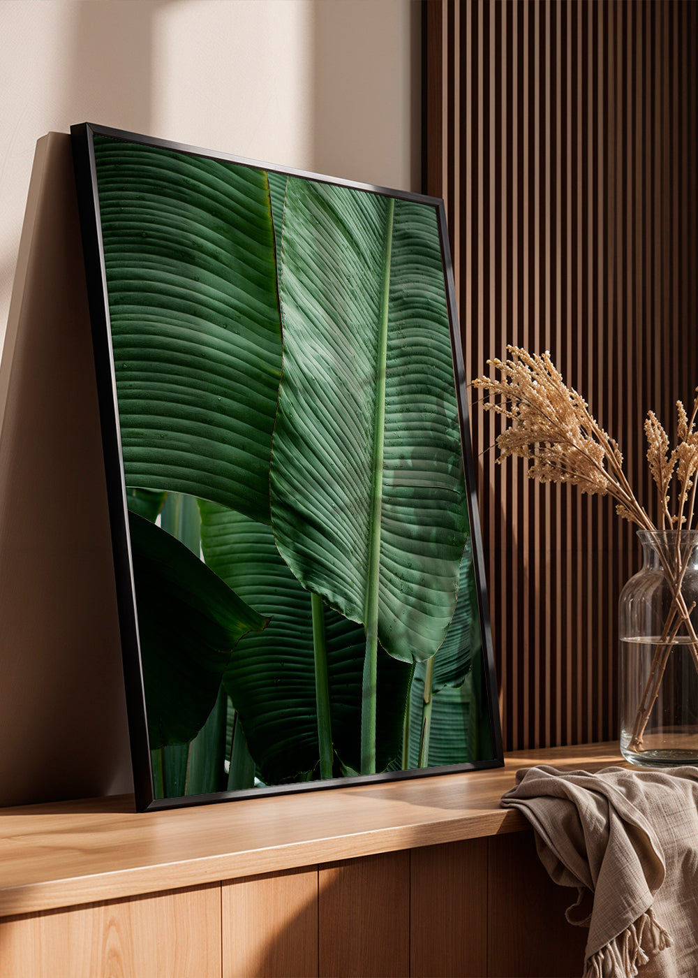 Un tableau de notre collection affiches feuille, conçue par Mareike Böhmer, avec les couleurs verts, et en position portrait. Créer un jardin vertical en combinant cette œuvre avec d'autres tableaux de fleurs et de plantes . Obtenez une décoration plus artistique que jamais.
