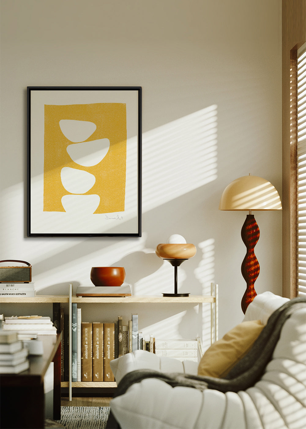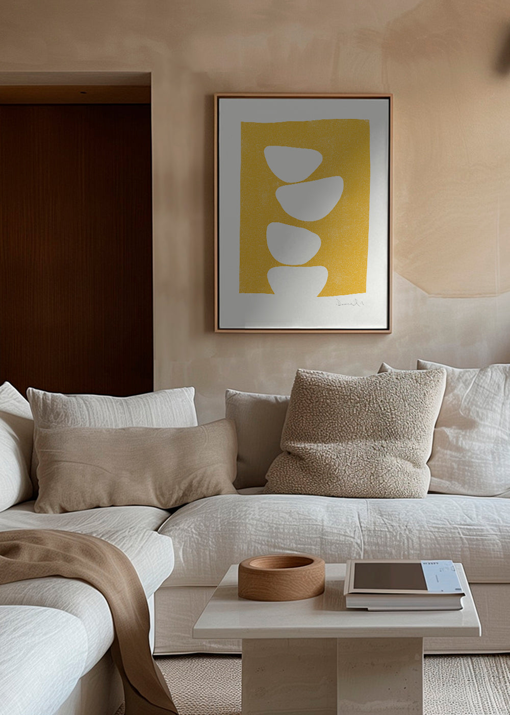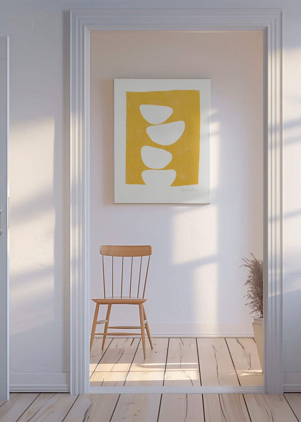 Jolie pièce de notre ensemble tableaux abstraits, conçue par 1x, avec des nuances jaunes, et pour mettre en orientation portrait. L’ art abstrait réveille nos esprits et nous fait réfléchir sur le sens des œuvres. Créer des espaces spéciaux.