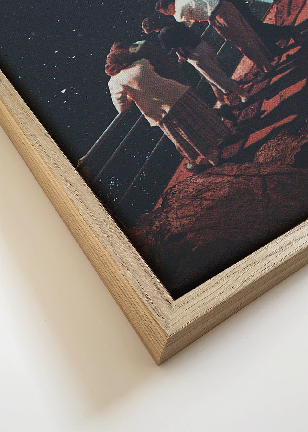 Si vous sélectionnez l'option passe-partout, nous ajouterons le tableau blanc mat au cadre, et nous réduirons le dessin de l'œuvre. Par exemple, si vous sélectionnez un tirage au format 50x70 cm, avec un cadre et un passe-partout couleur chêne, nous réduirons le dessin du tirage au format précédent (40x50cm). Ainsi, il s'adaptera parfaitement à la fenêtre intérieure du passe-partout.