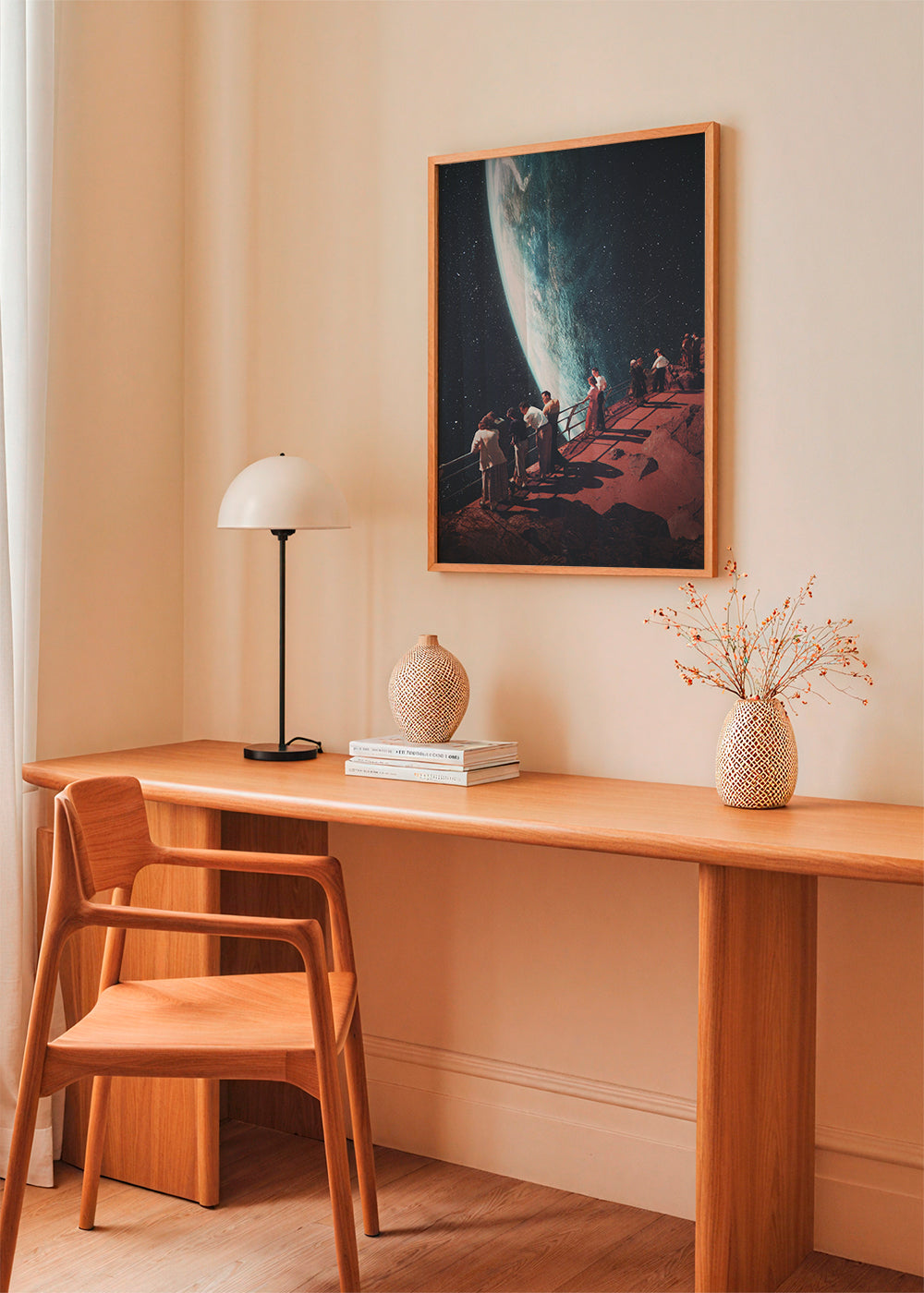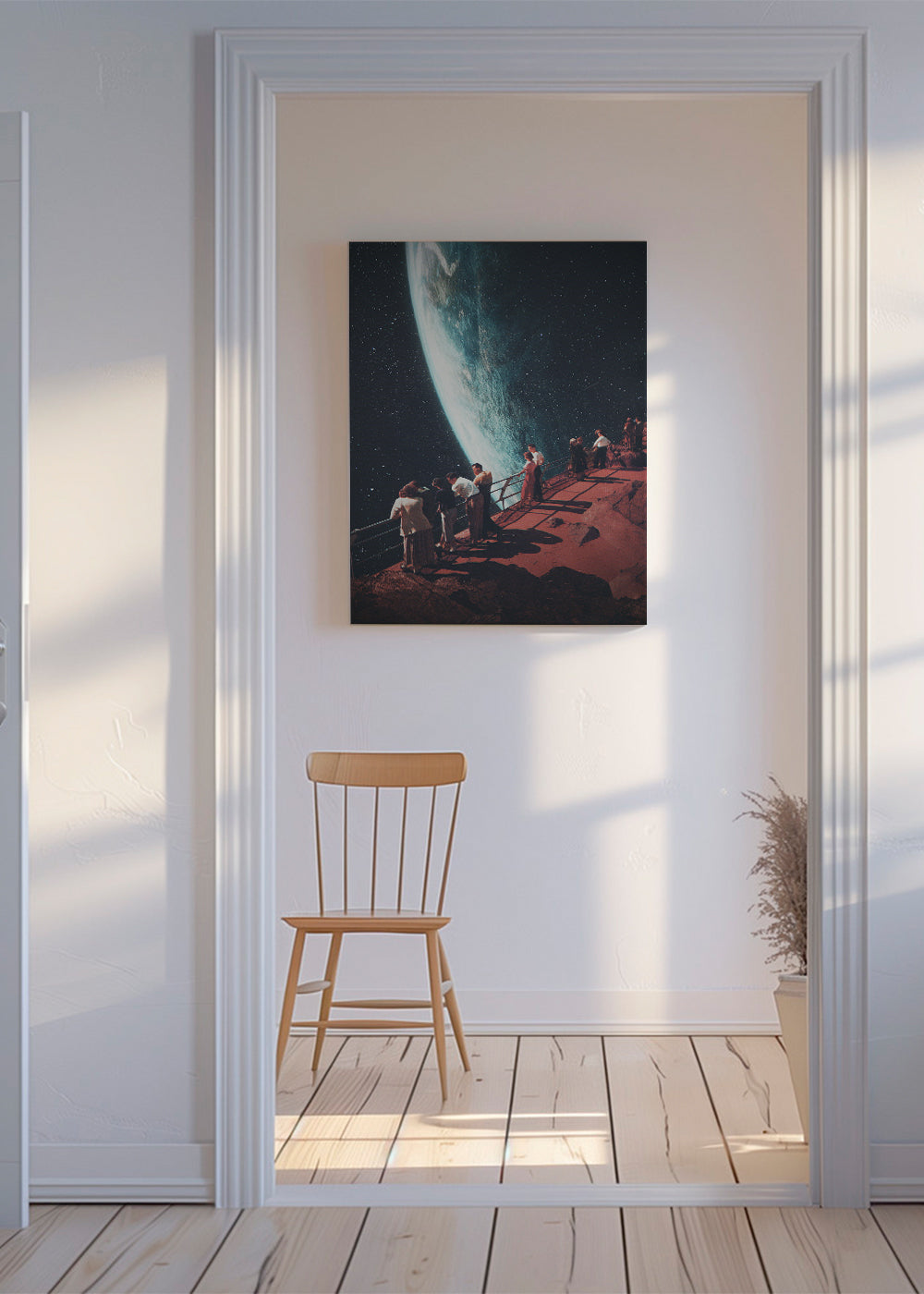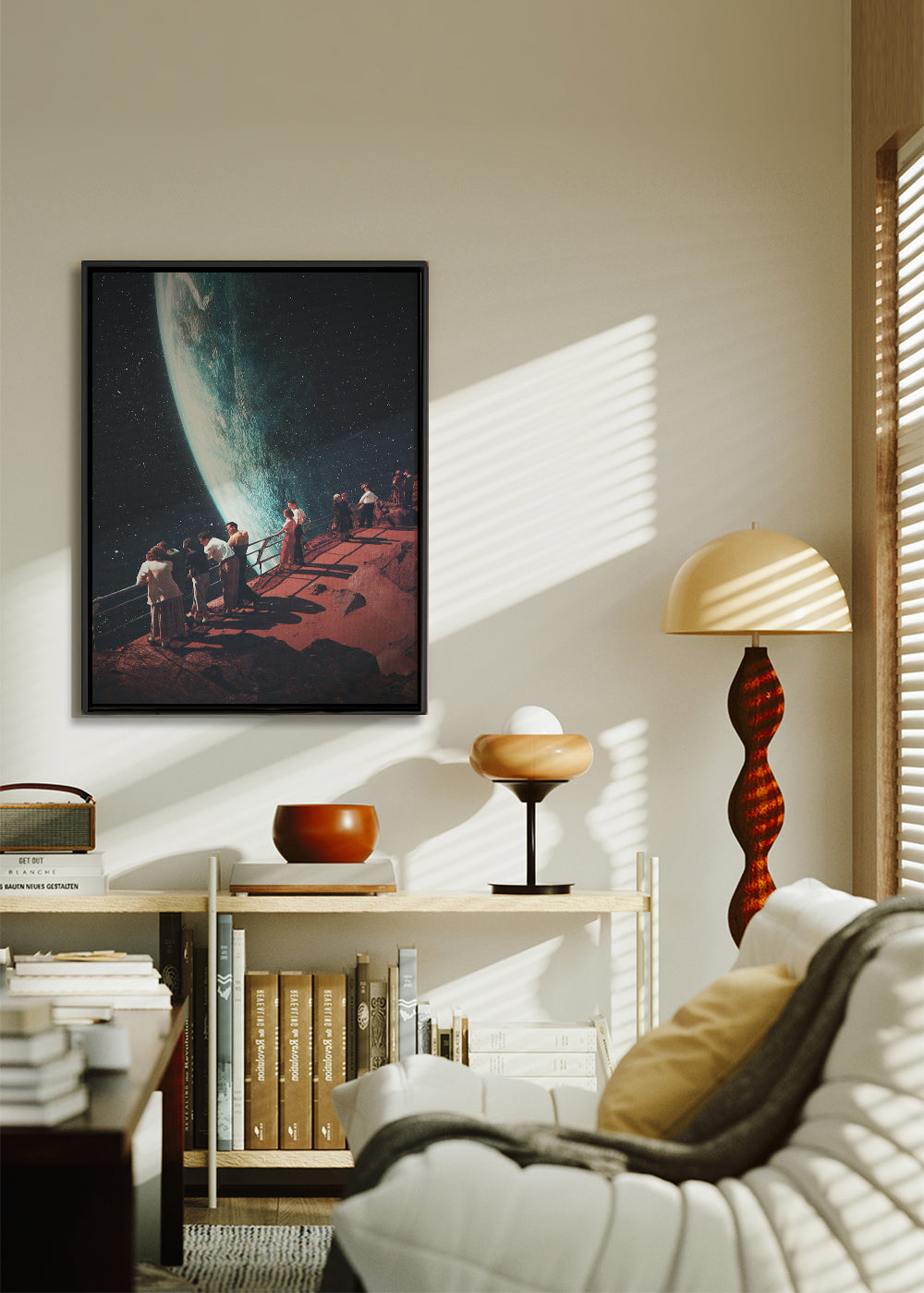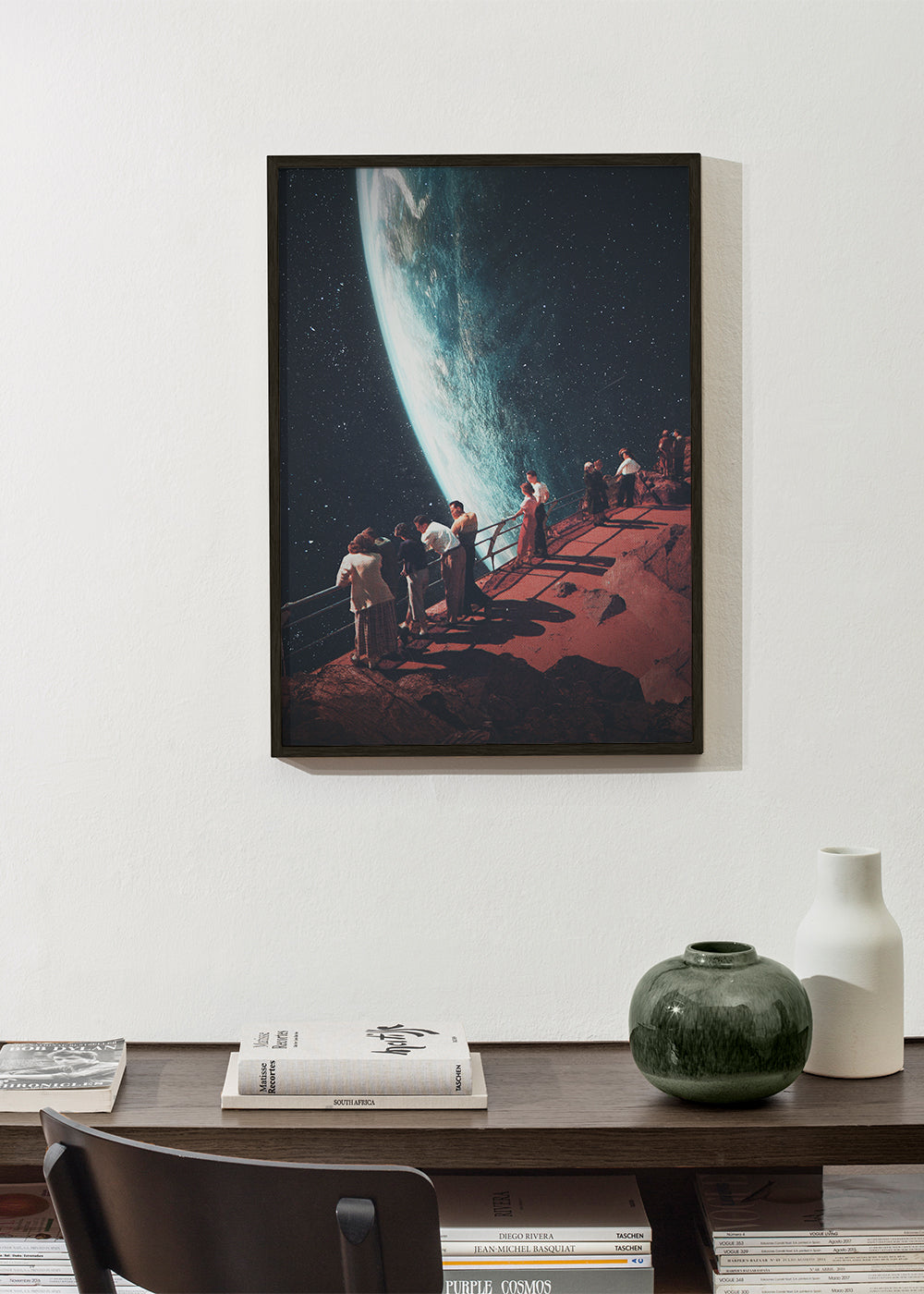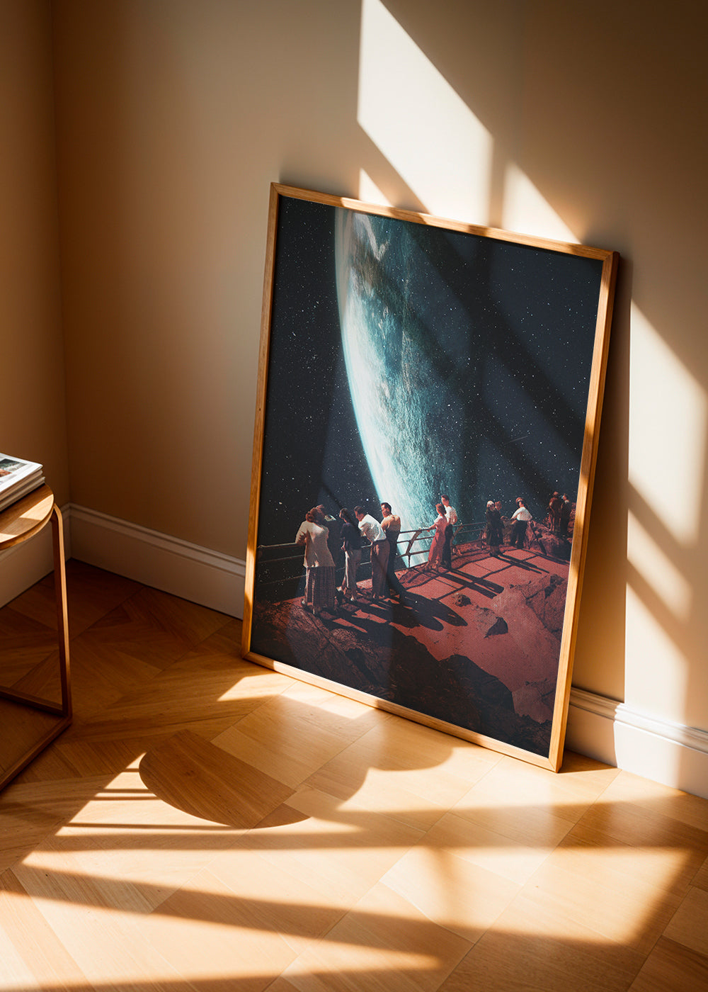 Un affiche de la série affiches planète, de Frank Moth, avec des touches bruns, et pour mettre en orientation portrait. Une œuvre de style rétro idéale pour une décoration aux touches vintage . Changez l'aspect d'une pièce en ajoutant simplement des tableaux aux murs.