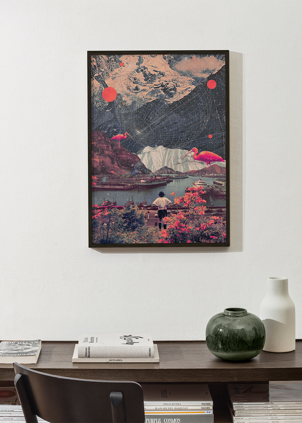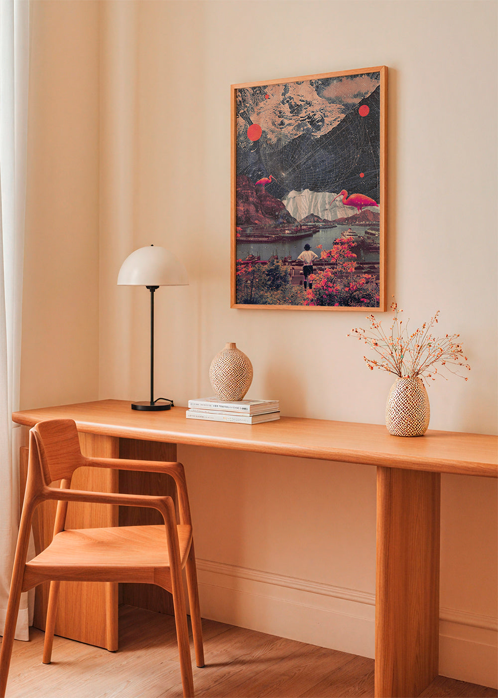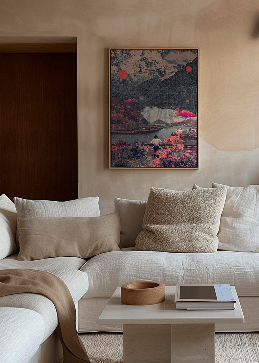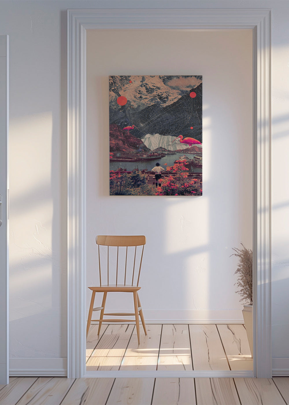 Un tableau de notre ensemble tableaux flamant rose, appartenant à la collection de Frank Moth, dans des tons multicolores, et pour mettre en portrait. Un poster rétro que vous pouvez combiner avec d'autres posters au style vintage pour donner une touche originale à votre maison. Oubliez les murs ennuyeux et fades.