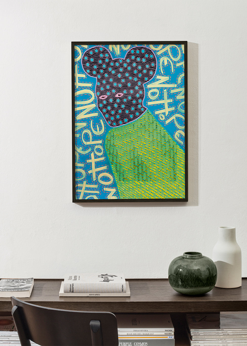 Beau modèle de la collection affiches street art, faite par 1x, avec des nuances bleus, et à mettre en portrait. Une œuvre idéale pour les espaces qui respirent l'art et la créativité. Nos illustrations sont idéales pour décorer des espaces vides ou ennuyeux. La combinaison parfaite de l'originalité et du design.