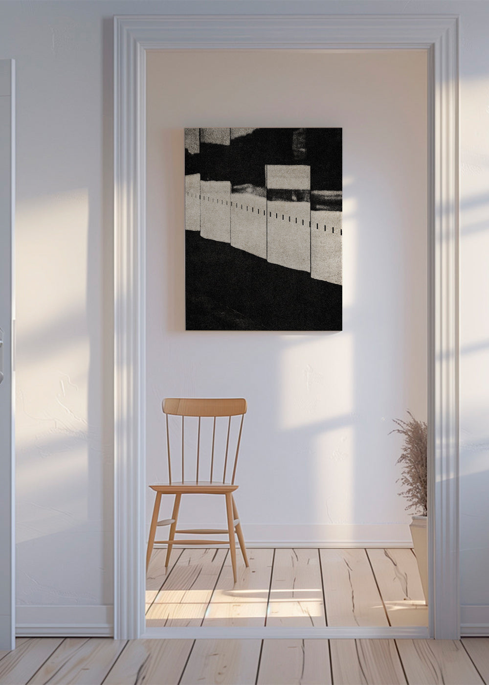 Une oeuvre de notre catégorie tableaux abstraits, de l'artiste Daniel Coulmann, avec des touches noirs, et pour mettre en position portrait. Les tableaux abstraits modernisent n’importe quel espace et donnent un aspect super chic à la décoration. Jouez avec les différentes combinaisons de nos œuvres pour obtenir le style que vous souhaitez.