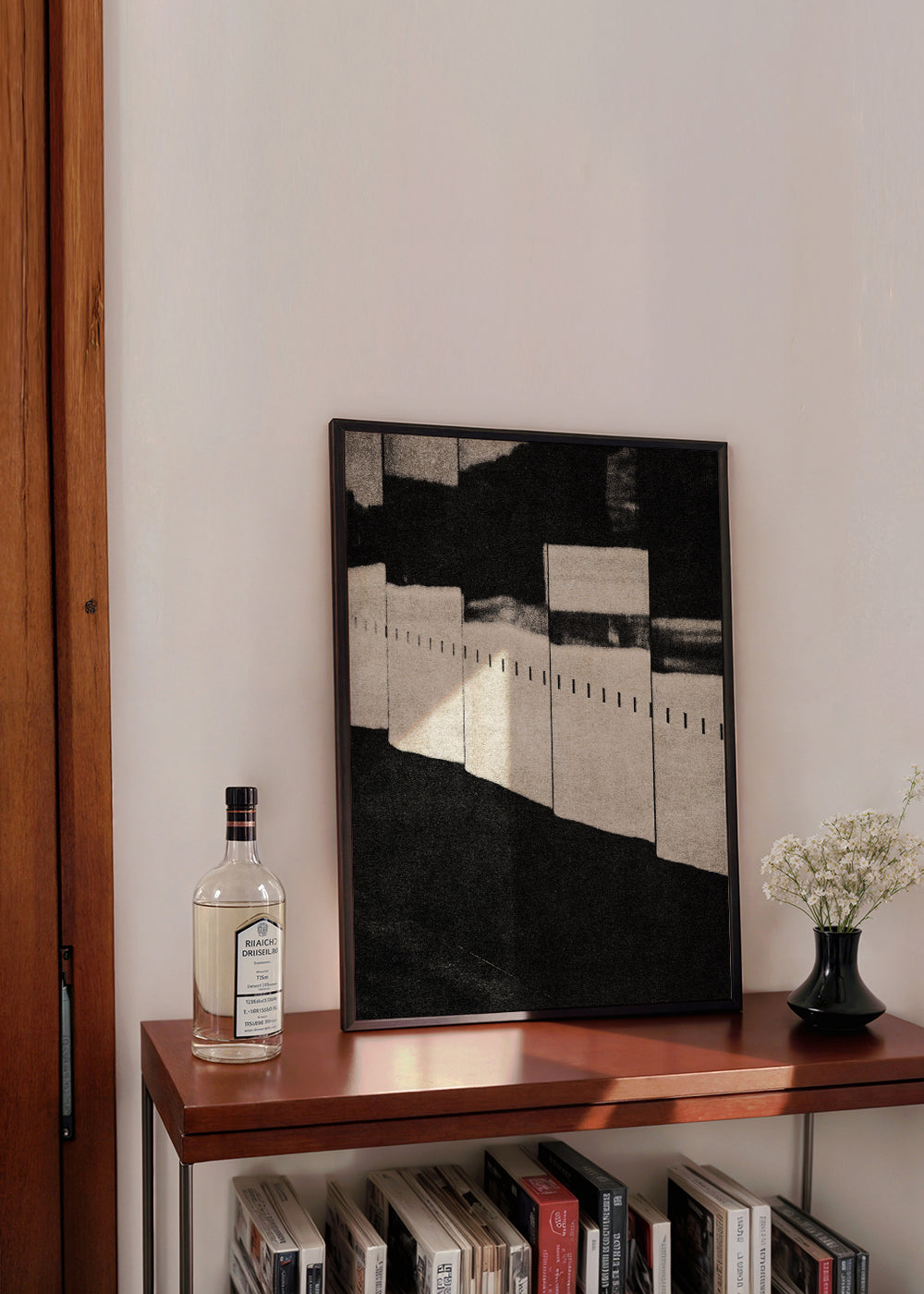 Le passe-partout est un panneau blanc mat qui entoure l'affiche pour la protéger du méthacrylate, et qui améliore également l'expressivité de l'œuvre et met en valeur ses détails.