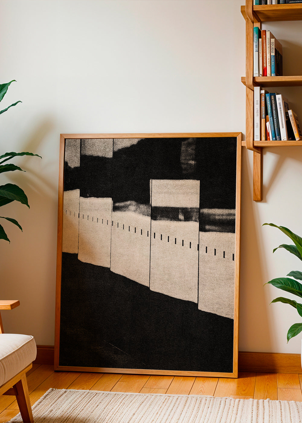 Si vous sélectionnez l'option passe-partout, nous ajouterons le tableau blanc mat au cadre, et nous réduirons le dessin de l'œuvre. Par exemple, si vous sélectionnez un tirage au format 50x70 cm, avec un cadre et un passe-partout couleur chêne, nous réduirons le dessin du tirage au format précédent (40x50cm). Ainsi, il s'adaptera parfaitement à la fenêtre intérieure du passe-partout.