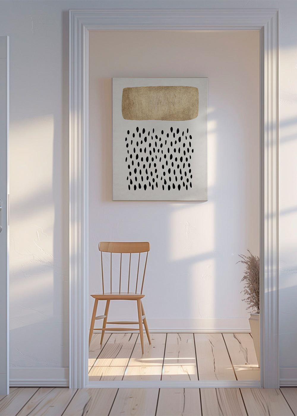 Cette oeuvre de notre ensemble tableaux avec motifs rayures, original de KUBISTIKA, avec pigments dorés, et dans une orientation vers un portrait. Cette œuvre aux formes abstraites est idéale à combiner avec les tableaux géométriques et l'art abstrait. La touche finale que vous recherchiez.