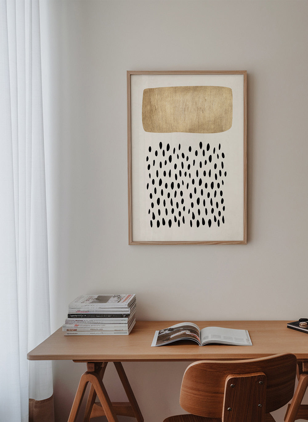 Si vous sélectionnez l'option passe-partout, nous ajouterons le tableau blanc mat au cadre, et nous réduirons le dessin de l'œuvre. Par exemple, si vous sélectionnez un tirage au format 50x70 cm, avec un cadre et un passe-partout couleur chêne, nous réduirons le dessin du tirage au format précédent (40x50cm). Ainsi, il s'adaptera parfaitement à la fenêtre intérieure du passe-partout.