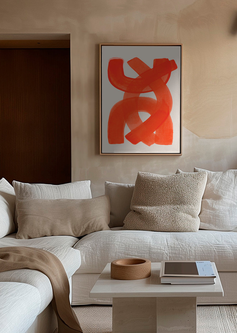 Un affiche de notre catégorie tableaux aux pinceaux, conçue par 1x, en couleurs orangés, et pour mettre en portrait. L’ art abstrait réveille nos esprits et nous fait réfléchir sur le sens des œuvres. Un merveilleux modèle qui s'harmonise avec votre décoration intérieure.