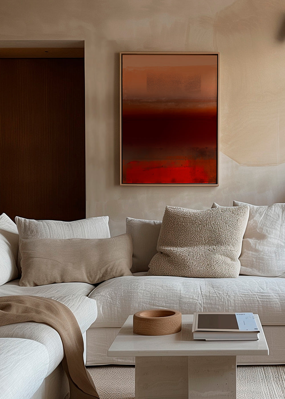 Un tableau appartenant à la catégorie tableaux abstraits, de Michael Hunter, avec des touches rouges, et en position portrait. Décorer avec des tableaux abstraits si vous souhaitez une décoration intérieure originale. Un mur avec de jolis tableaux peut changer l'aspect d'une pièce.