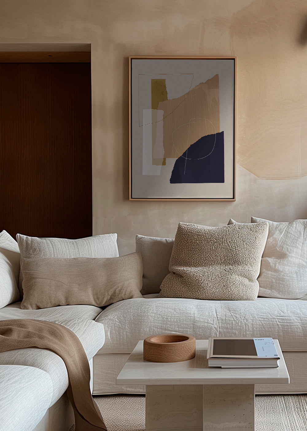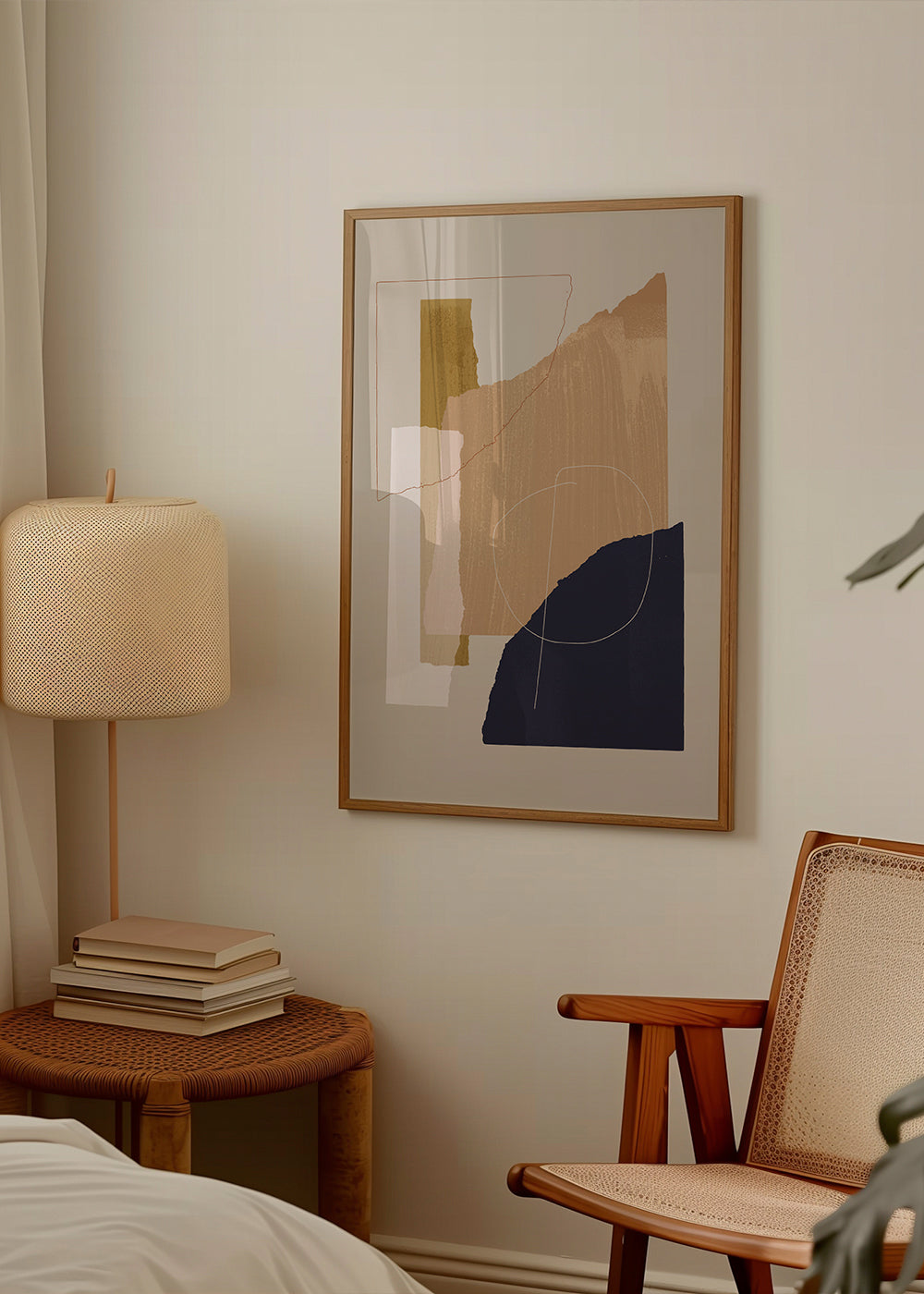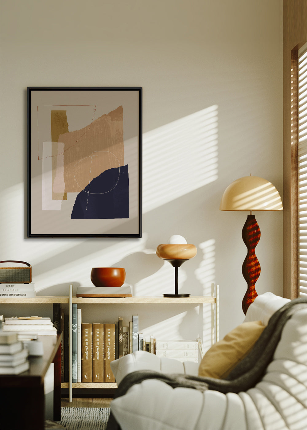 Beau poster de la collection tableaux aux pinceaux, conçue par Mareike Böhmer, avec des touches bleus, et avec orientation portrait. Les formes géométriques et abstraites contribuent à créer une atmosphère légère et créative. Ce sont les détails qui font toute la différence.