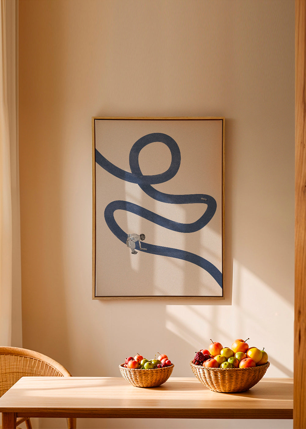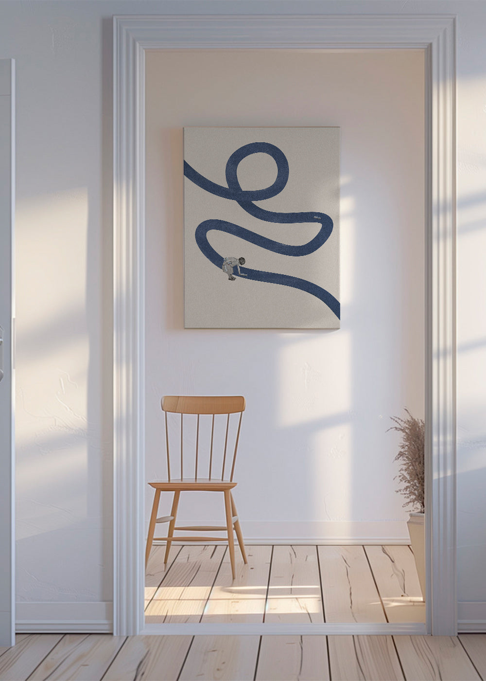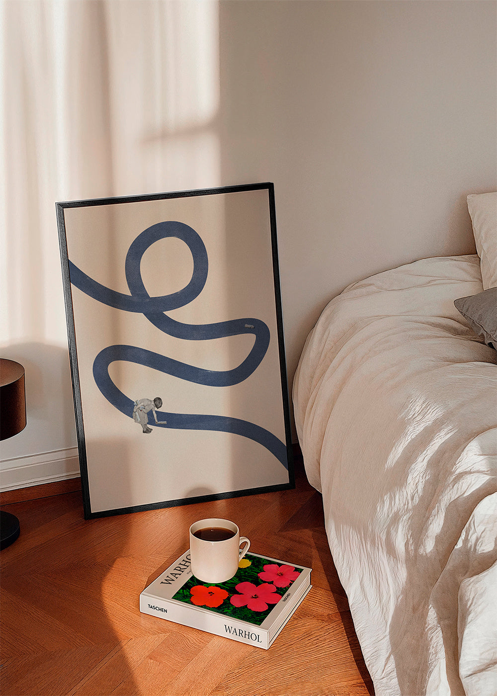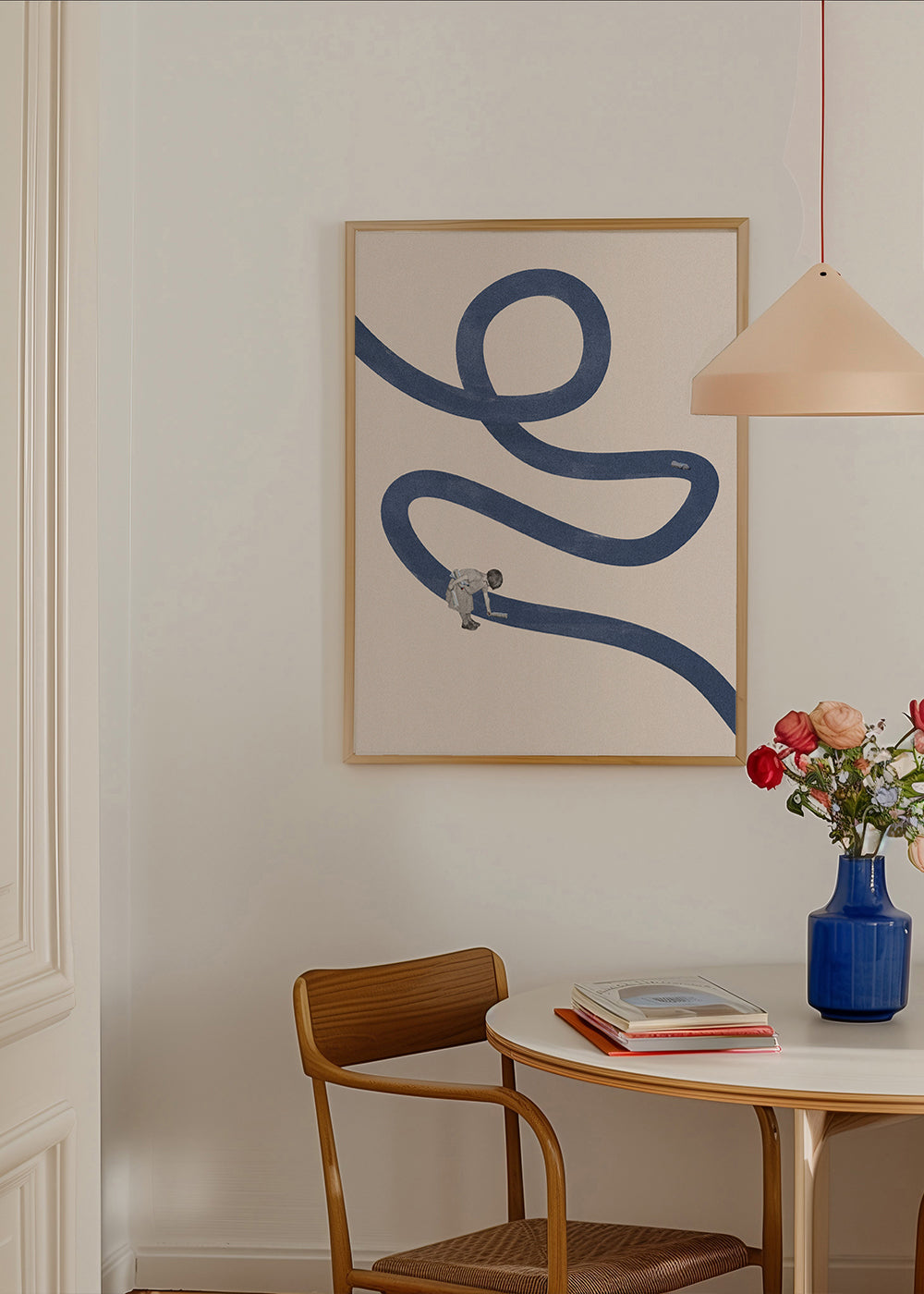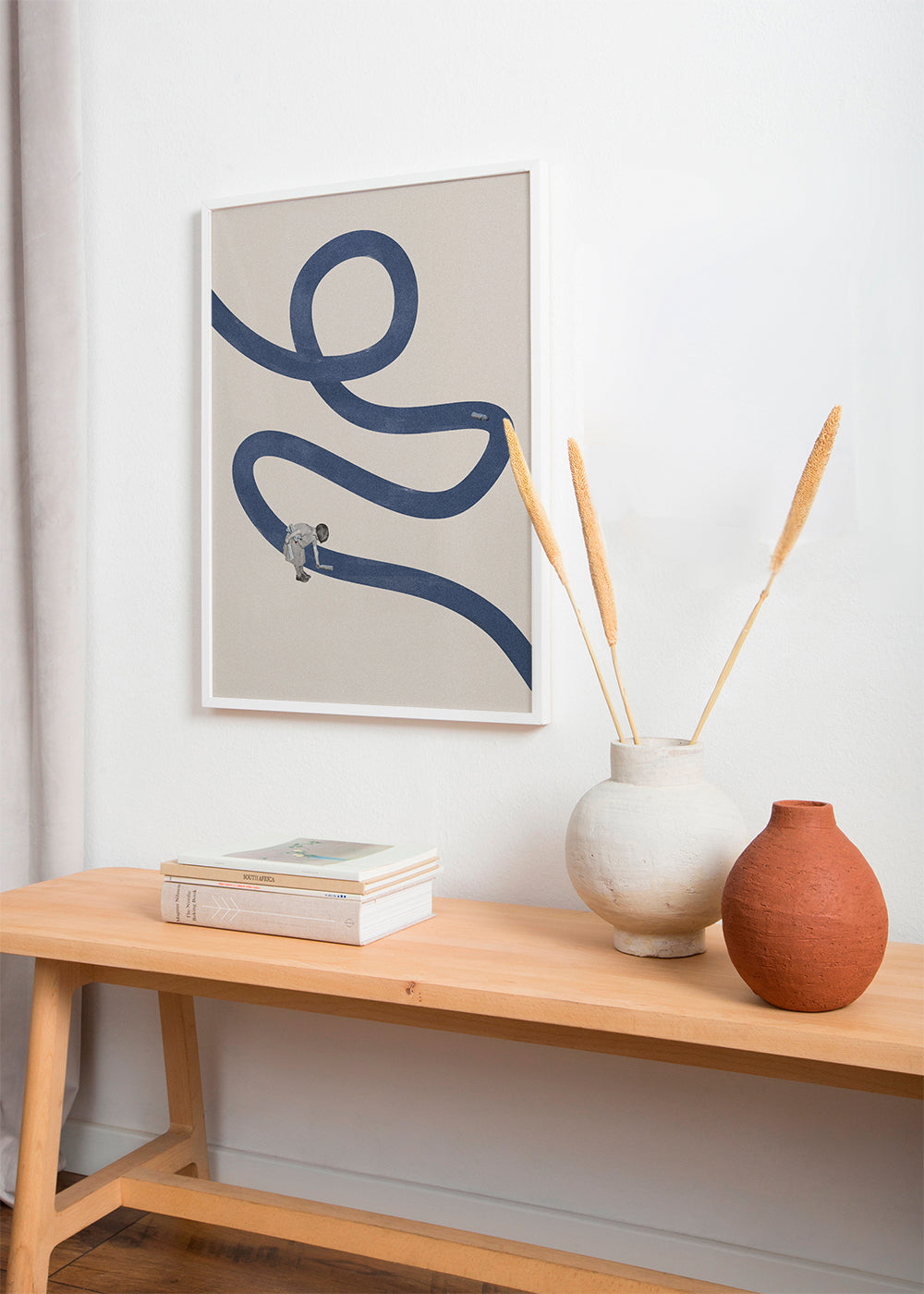 Beau modèle de la série posters et affiches vintage, créée par Maarten Léon, avec des nuances bleus, et en position portrait. Une œuvre de style rétro idéale pour une décoration aux touches vintage . Un mur vide est un mur triste, mais quelques photos vous apporteront un sourire.