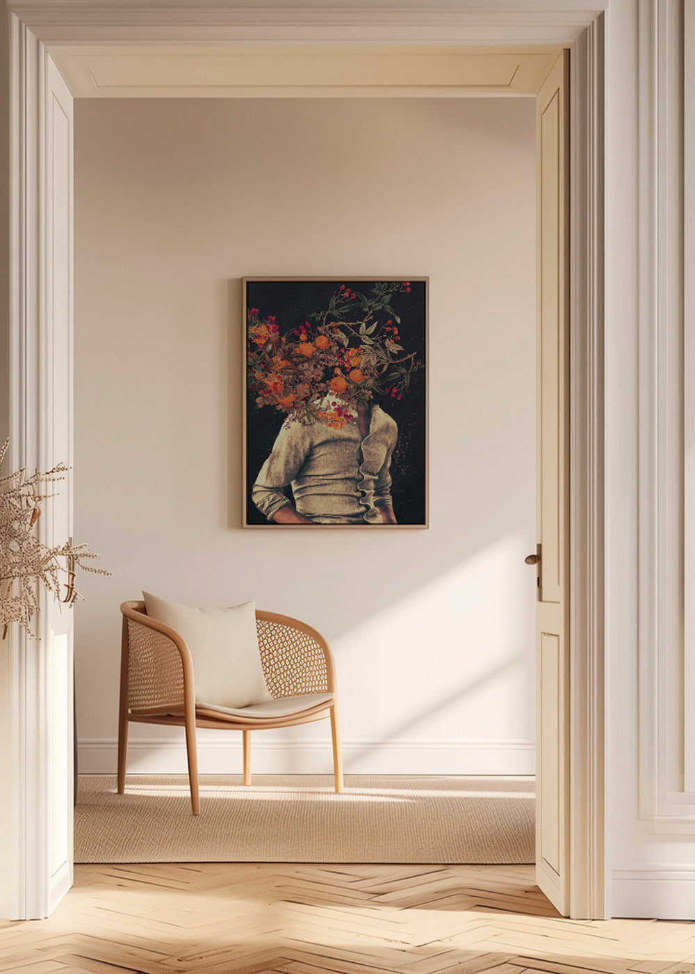 Si vous sélectionnez l'option passe-partout, nous ajouterons le tableau blanc mat au cadre, et nous réduirons le dessin de l'œuvre. Par exemple, si vous sélectionnez un tirage au format 50x70 cm, avec un cadre et un passe-partout couleur chêne, nous réduirons le dessin du tirage au format précédent (40x50cm). Ainsi, il s'adaptera parfaitement à la fenêtre intérieure du passe-partout.