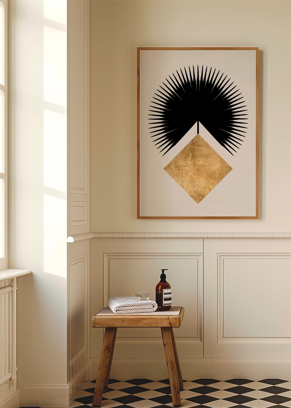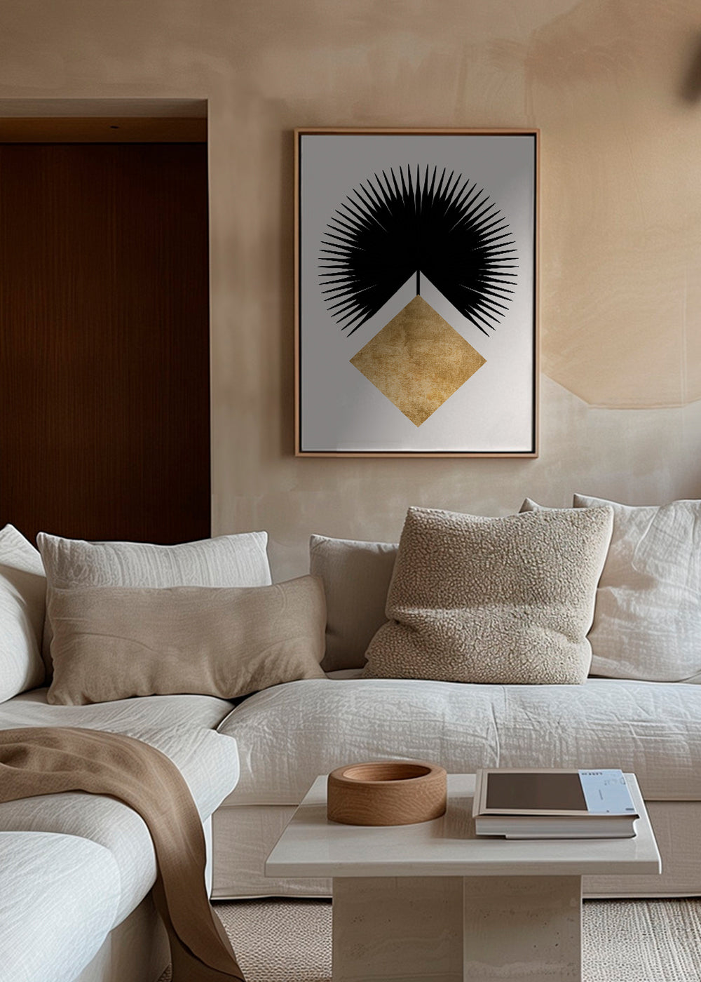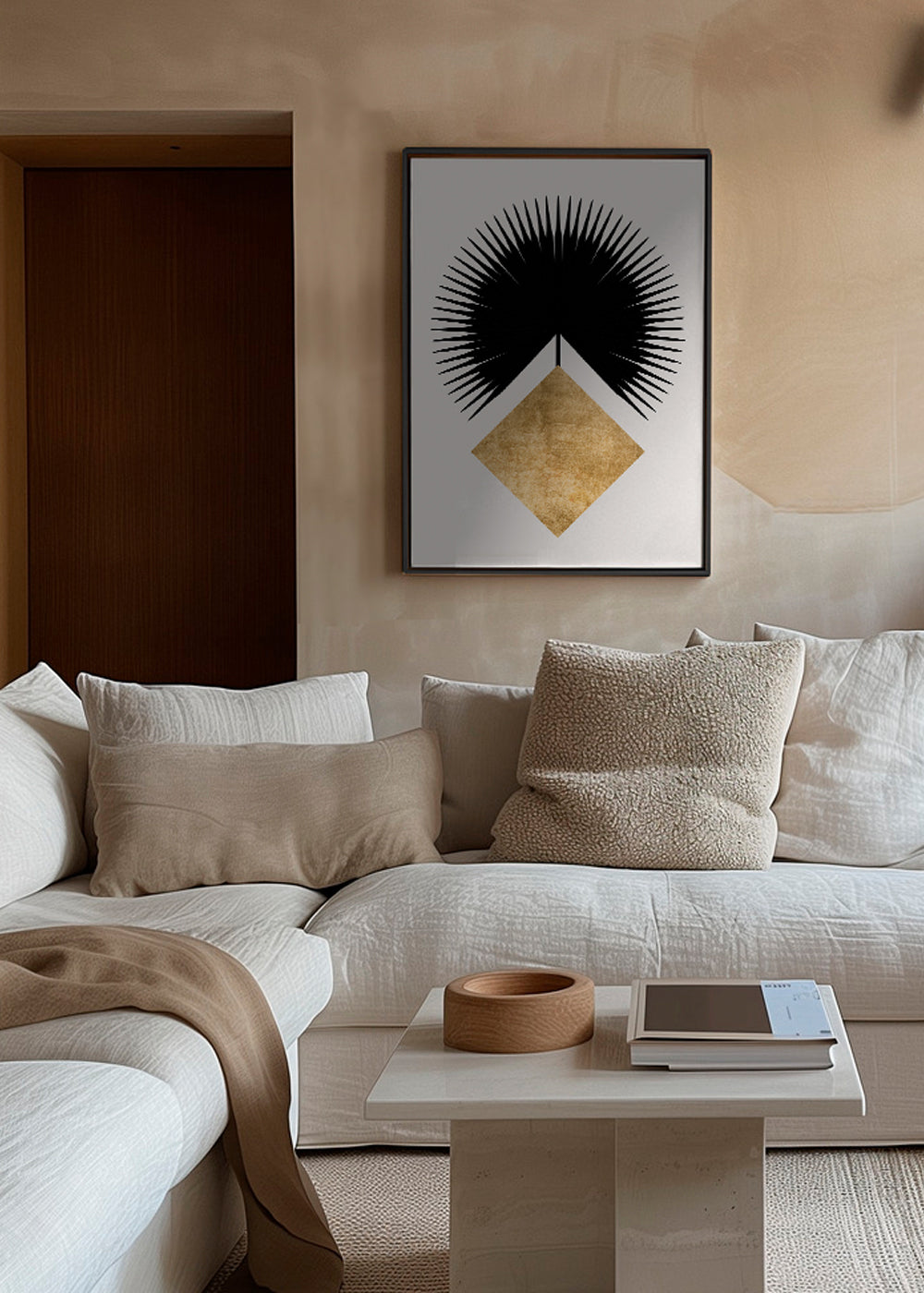 Beau poster de notre catégorie tableaux géométrique, de l'artiste Kubistika, avec des tonalités dorés, et dans une orientation portrait. Les tableaux géométriques sont une excellente option pour décorer des espaces modernes et d'avant-garde. Ajoutez un peu d'art à la décoration de votre maison.