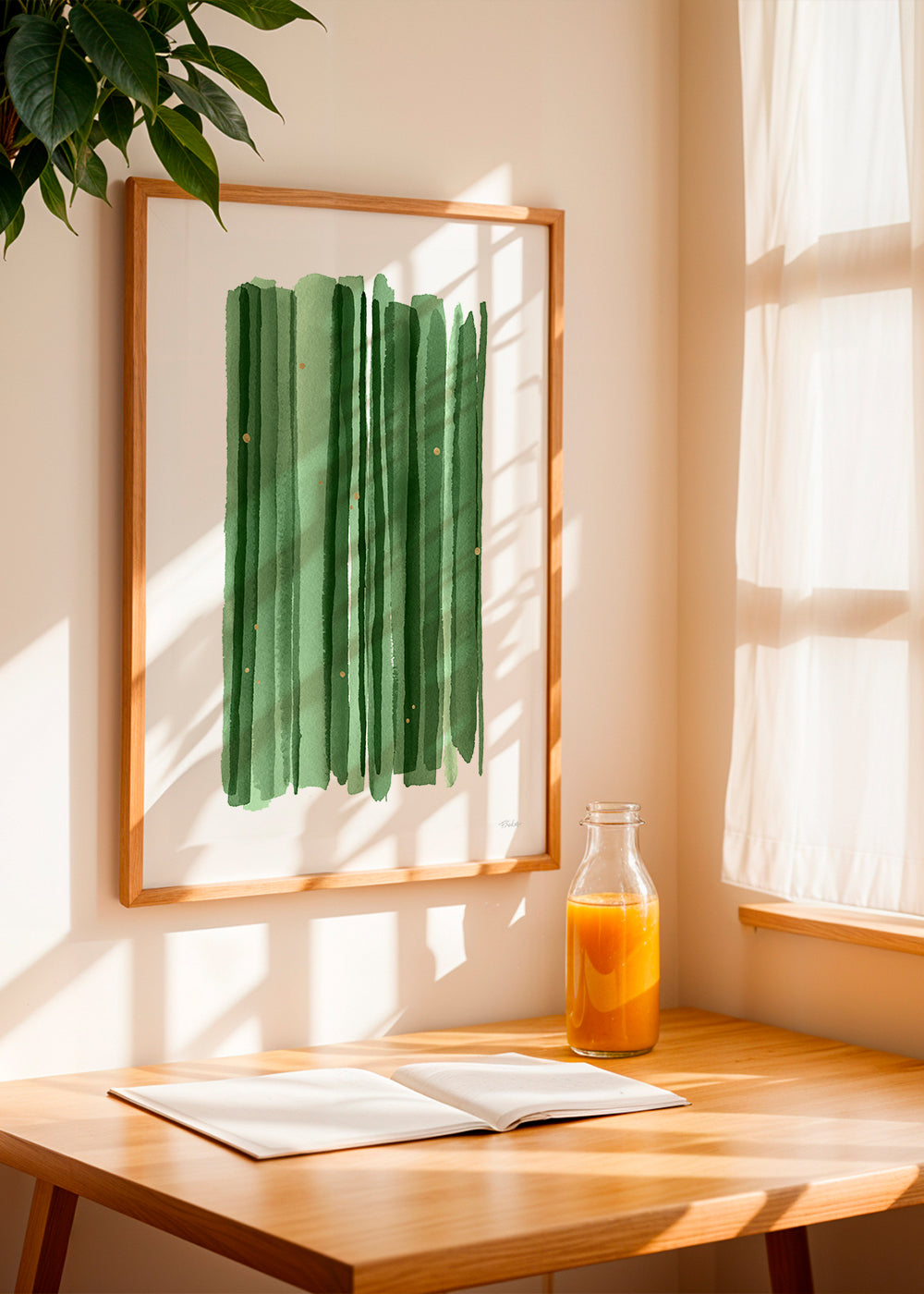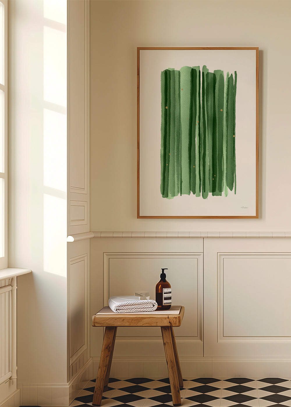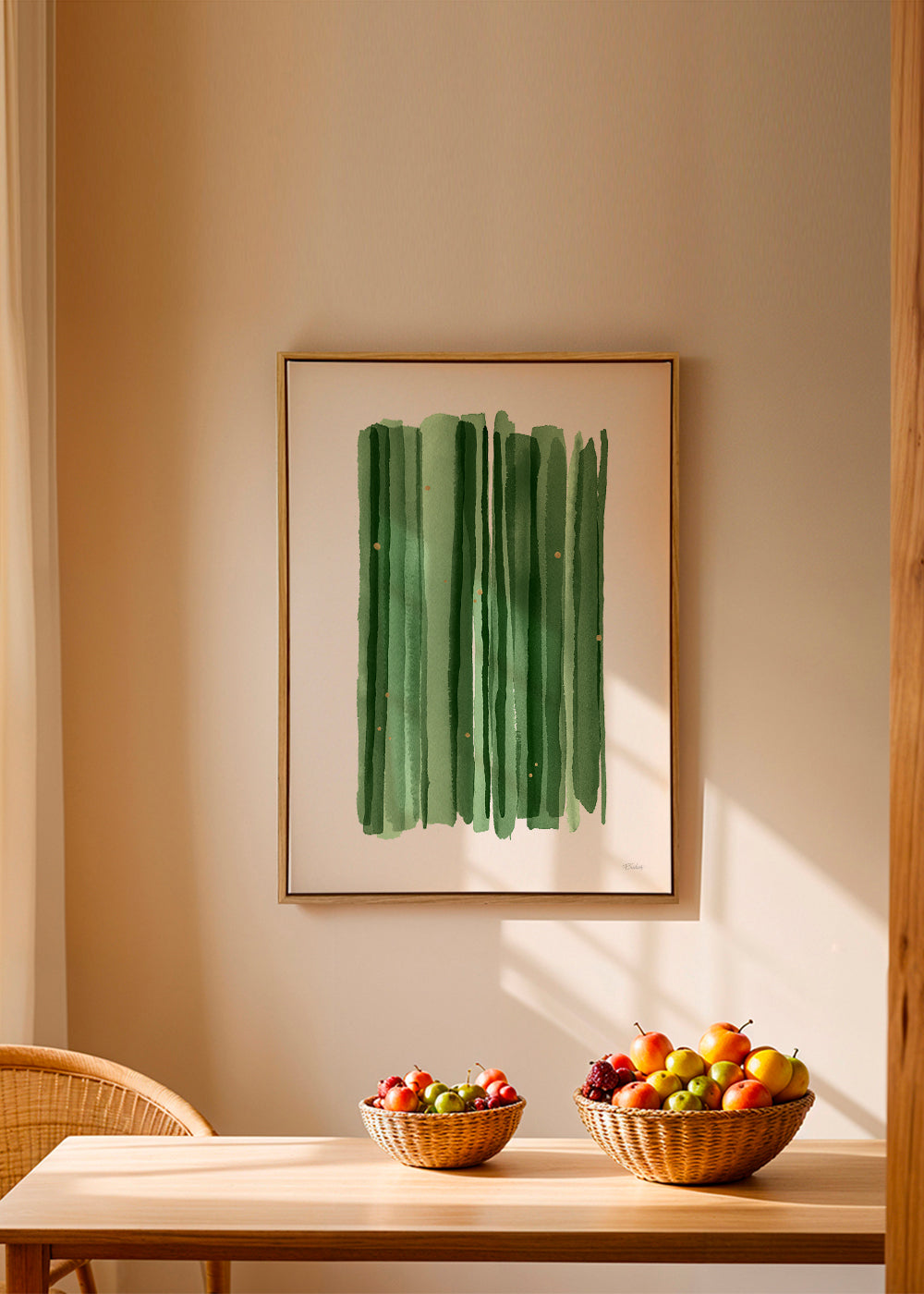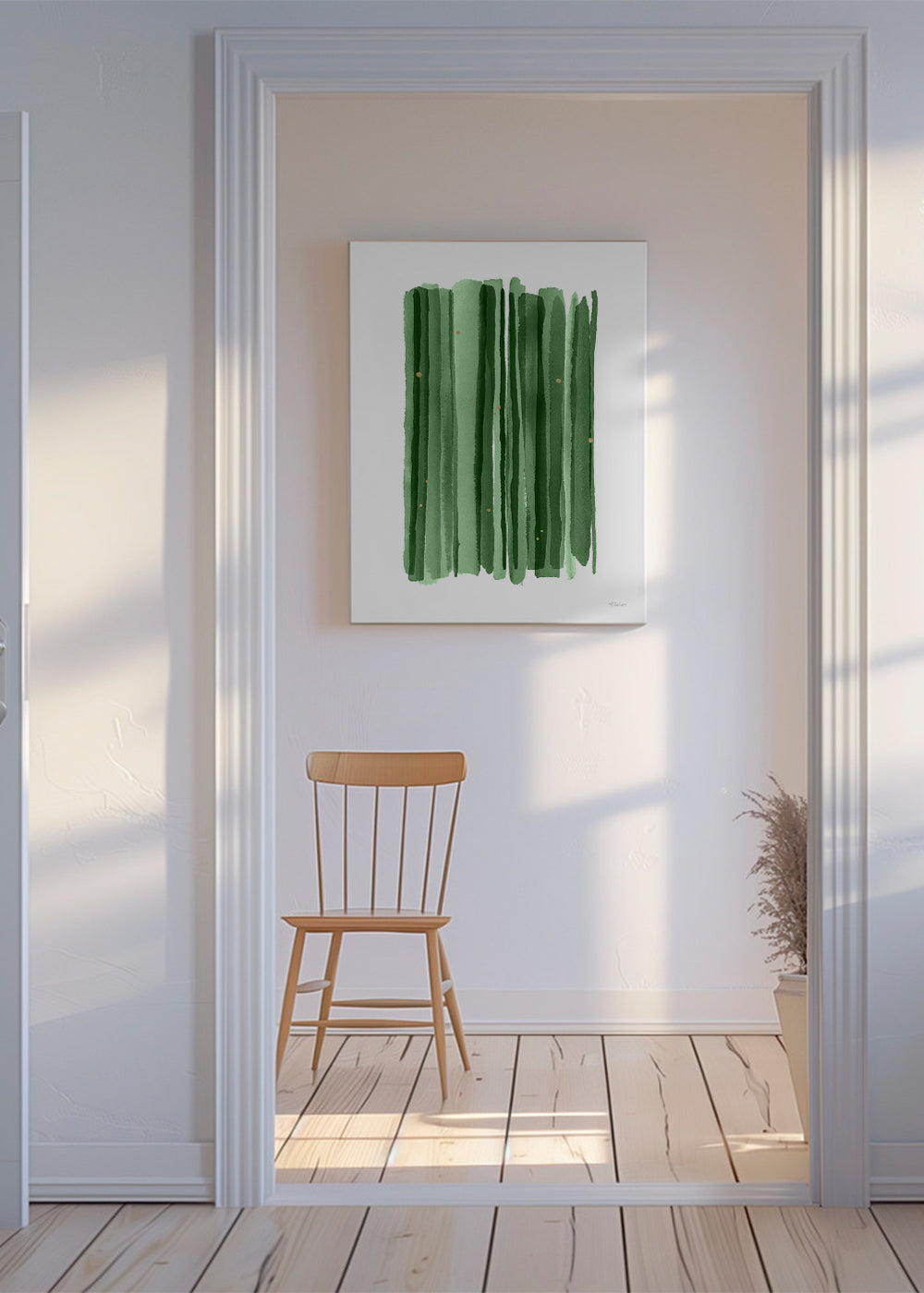Une oeuvre de notre collection tableaux géométrique, appartenant à la collection de Fabiana Silveira, avec des nuances de couleurs verts, et avec orientation portrait. L'art géométrique est un style élégant pour décorer les murs de la maison. Le design de votre maison est entre vos mains.