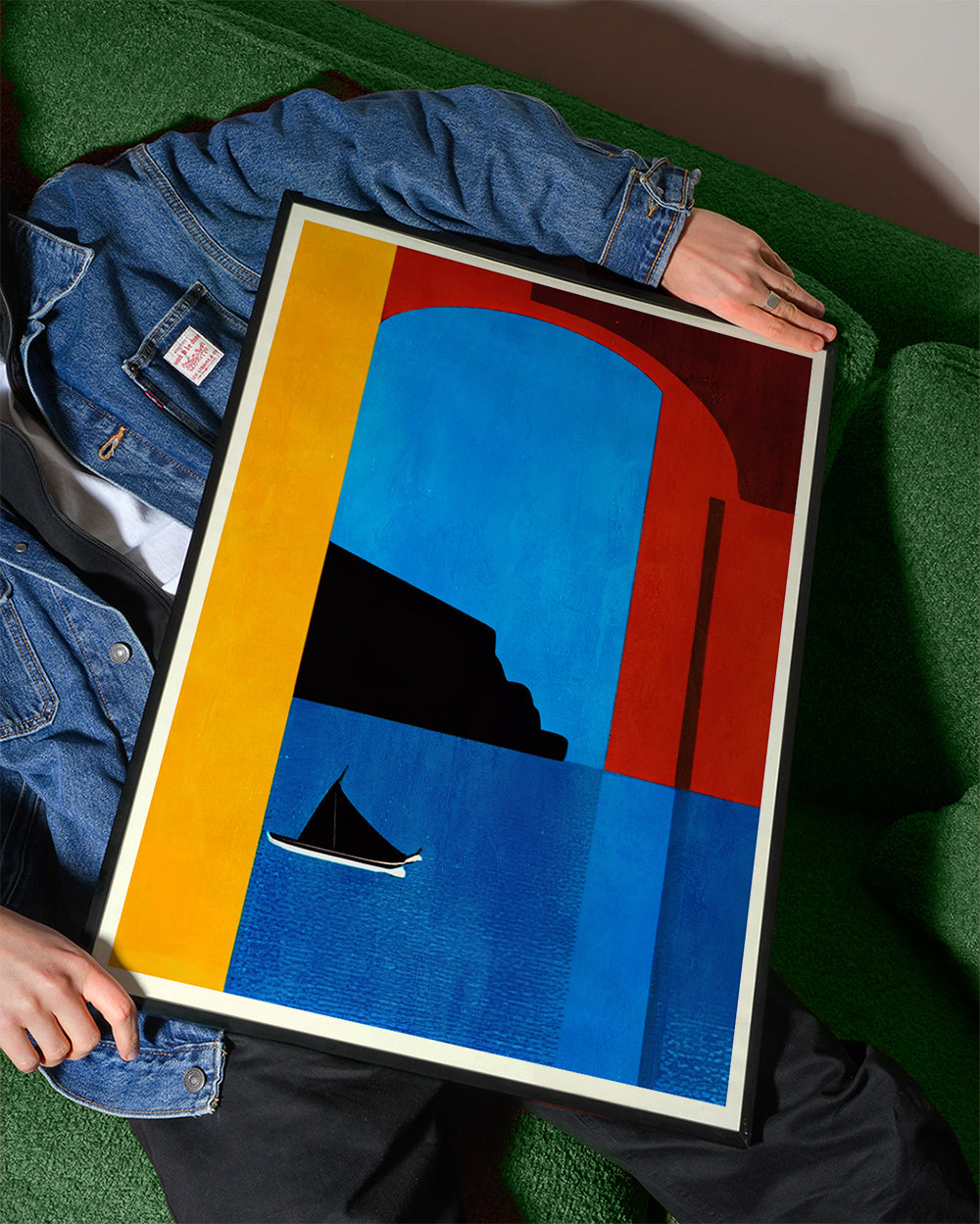 Le passe-partout est un panneau blanc mat qui entoure l'affiche pour la protéger du méthacrylate, et qui améliore également l'expressivité de l'œuvre et met en valeur ses détails.