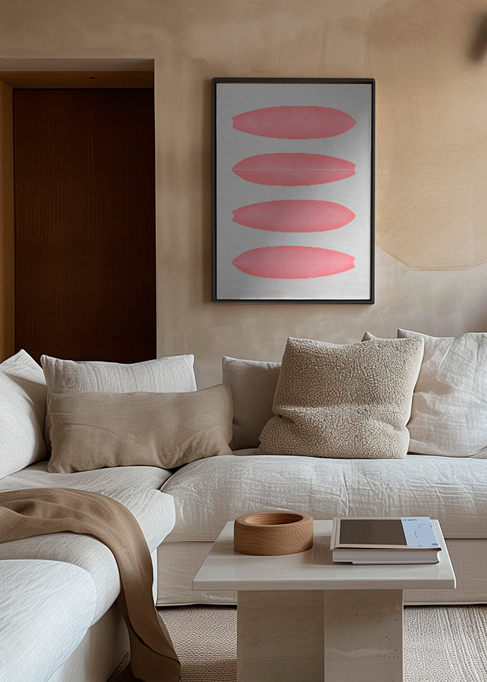 Un affiche de notre collection tableaux surf, faite par Gal Design, avec pigments roses, et en portrait. C'est une illustration de style simple et propre, combinez-la avec d'autres illustrations pour obtenir une composition artistique. Les murs décorés avec des tableaux sont un must