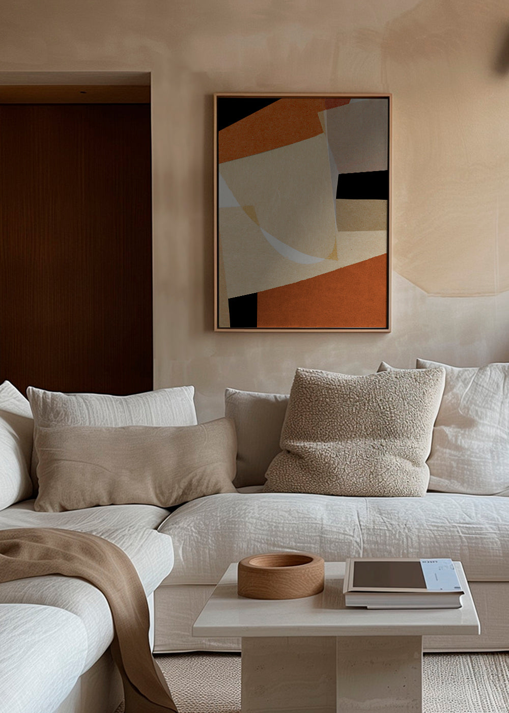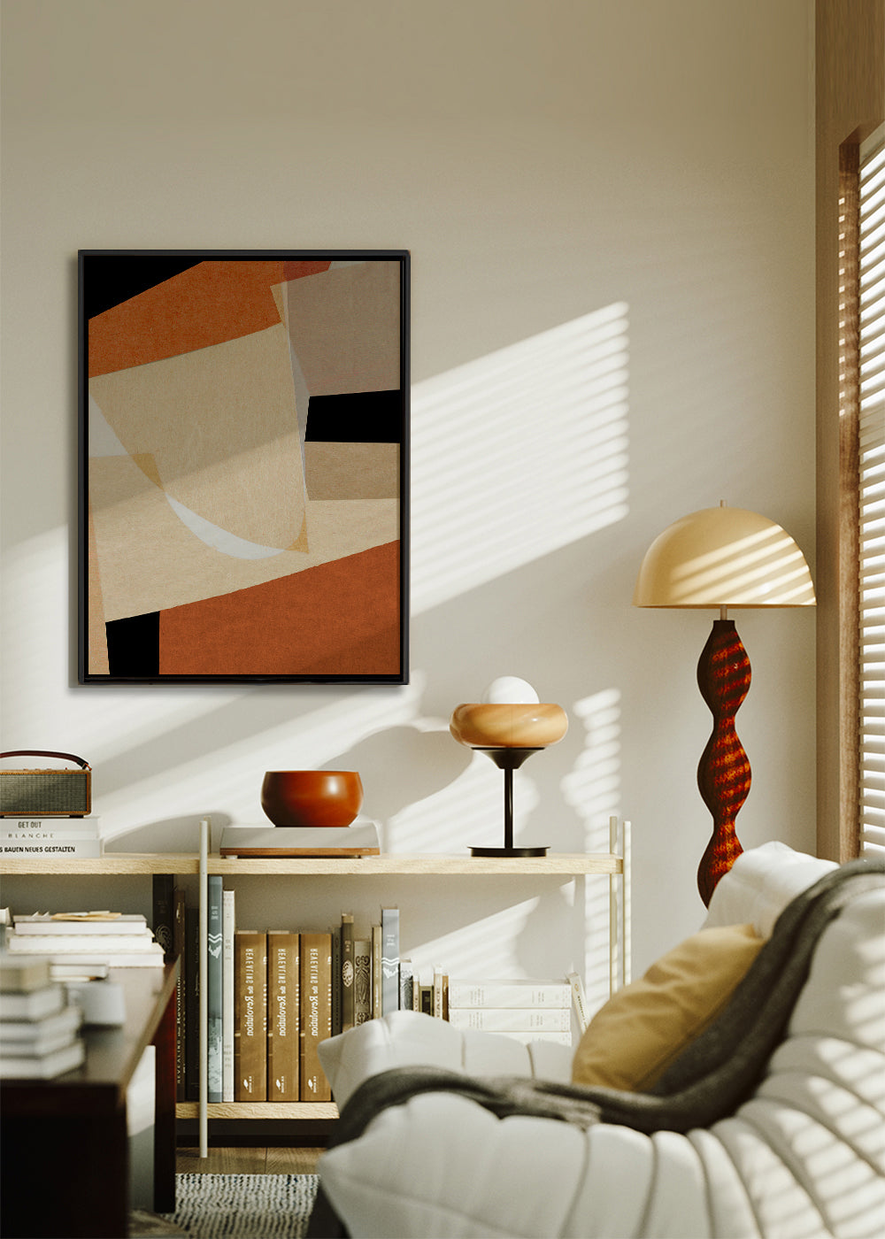 Une oeuvre de la série tableaux géométrique, original de 1x, avec des tonalités bruns, et en position portrait. Cette œuvre aux formes abstraites est idéale à combiner avec les tableaux géométriques et l'art abstrait. Donnez une touche artistique à votre décoration.