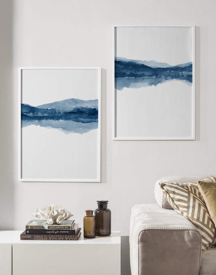 Jolie oeuvre de notre collection tableaux paysages et nature, conçue par Nouveau Prints, avec pigments bleus, et à mettre en portrait. La nature est l'une des plus belles œuvres d'art qui existent... vous ne trouvez pas ? Combinez nos tableaux de paysages pour obtenir une décoration pleine de fraîcheur. Créez votre espace préféré.