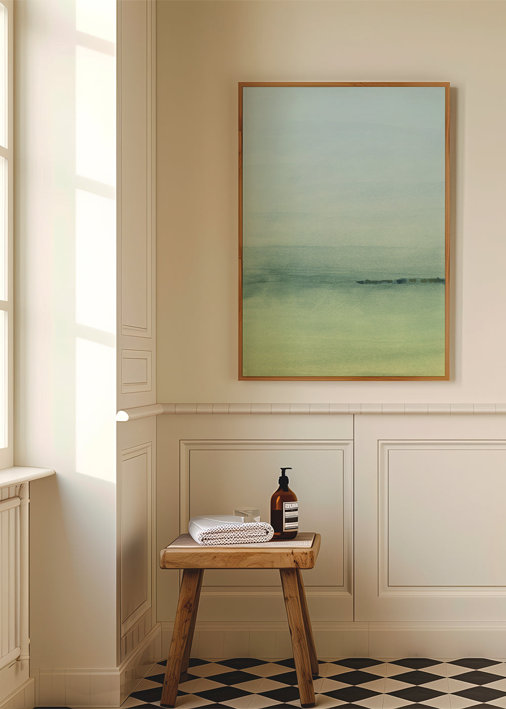 Une oeuvre de la série tableaux paysages et nature, de Nouveau Prints, avec des tonalités bleus, et pour mettre en orientation portrait. Un jolie paysage idéal à combiner avec d'autres tableaux de la nature . Il n'y a pas de murs laids ou jolis, il y a des murs vides ou décorés.