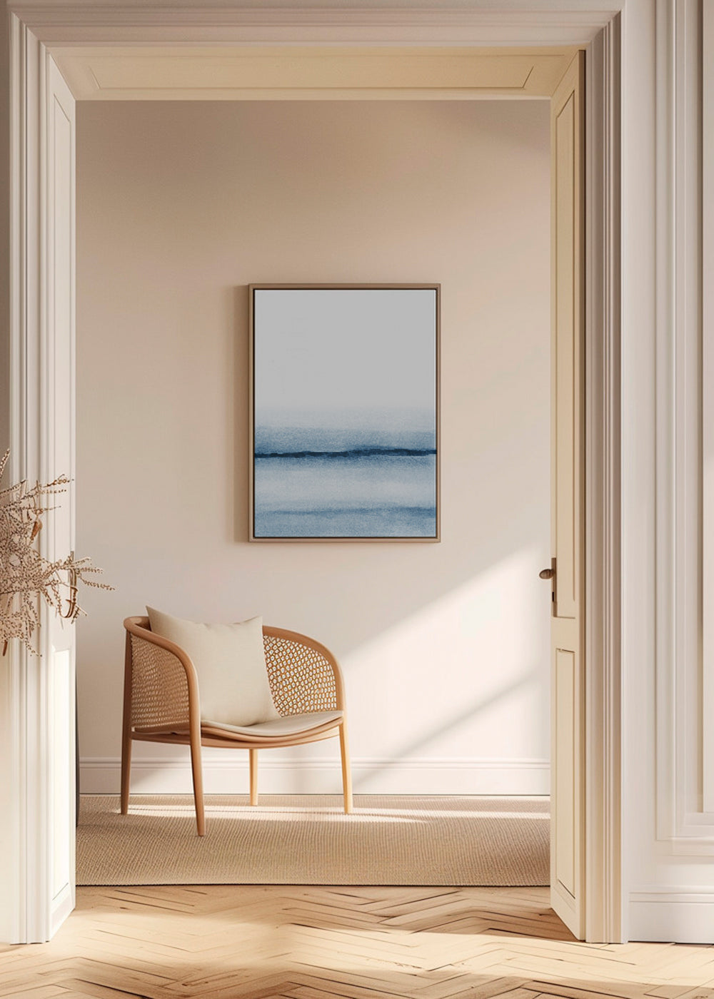 Une oeuvre de notre ensemble tableaux paysages et nature, de la collection de l'artiste Nouveau Prints, avec les couleurs bleus, et pour mettre en position portrait. Les tableaux de paysages sont spectaculaires, combinez-les avec des textes et des phrases pour créer d’incroyables compositions murales. Des murs pleins de créativité.