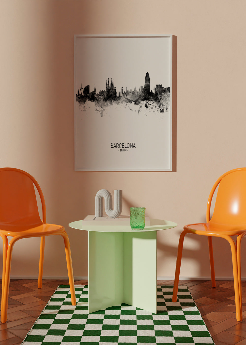 Tableau Barcelona skyline noir et blanc
