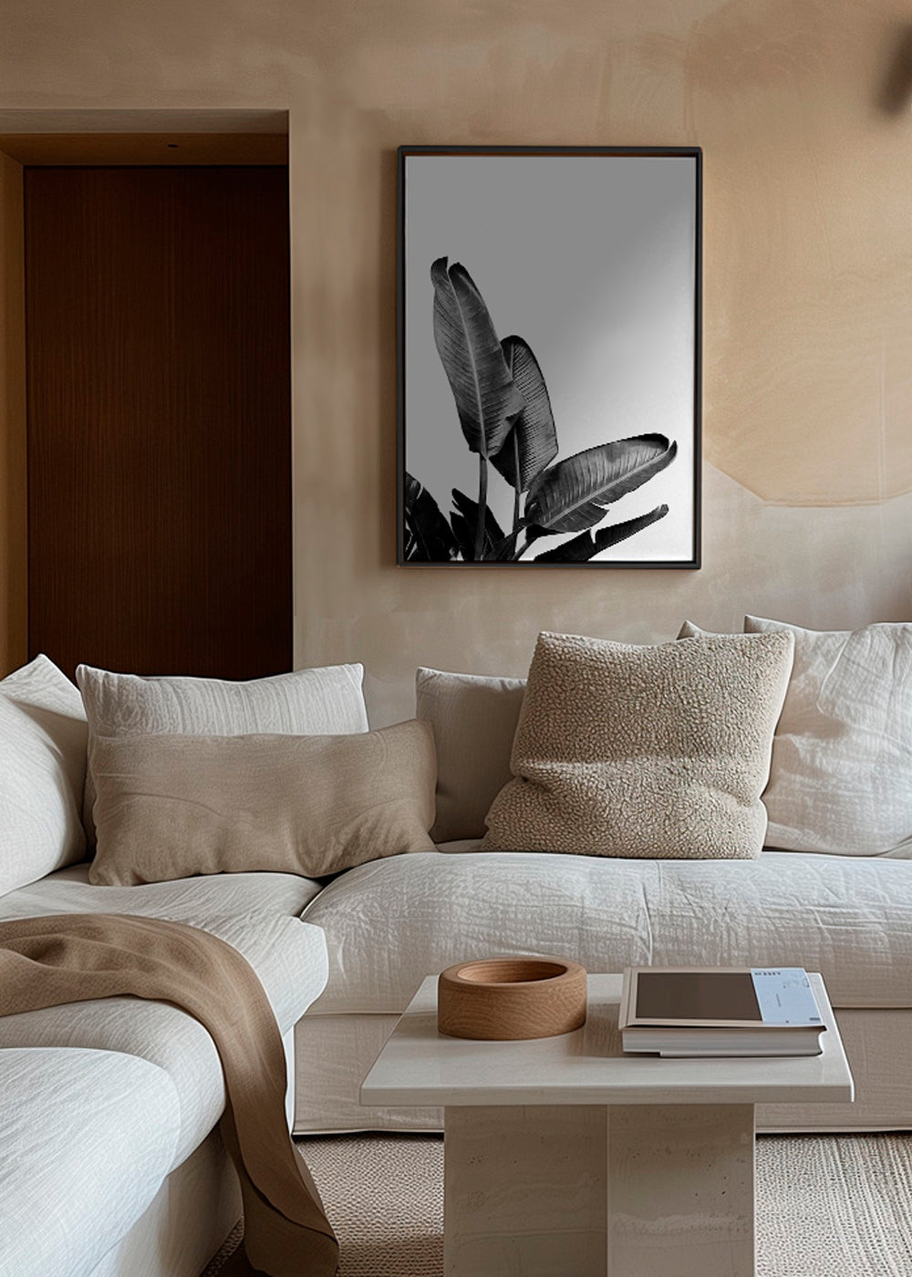 Une image de la collection affiches feuille, original de amini54, avec des tonalités monochromes, et dans une orientation portrait. Créer un jardin vertical en combinant cette œuvre avec d'autres tableaux de fleurs et de plantes . Un mur vide est une toile qui doit être peinte.
