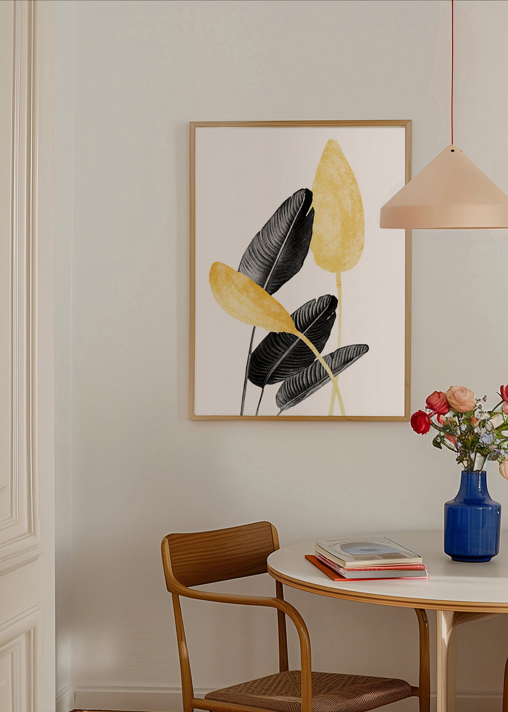 Tableau Bird of Paradise Plant Black, White and Gold 02