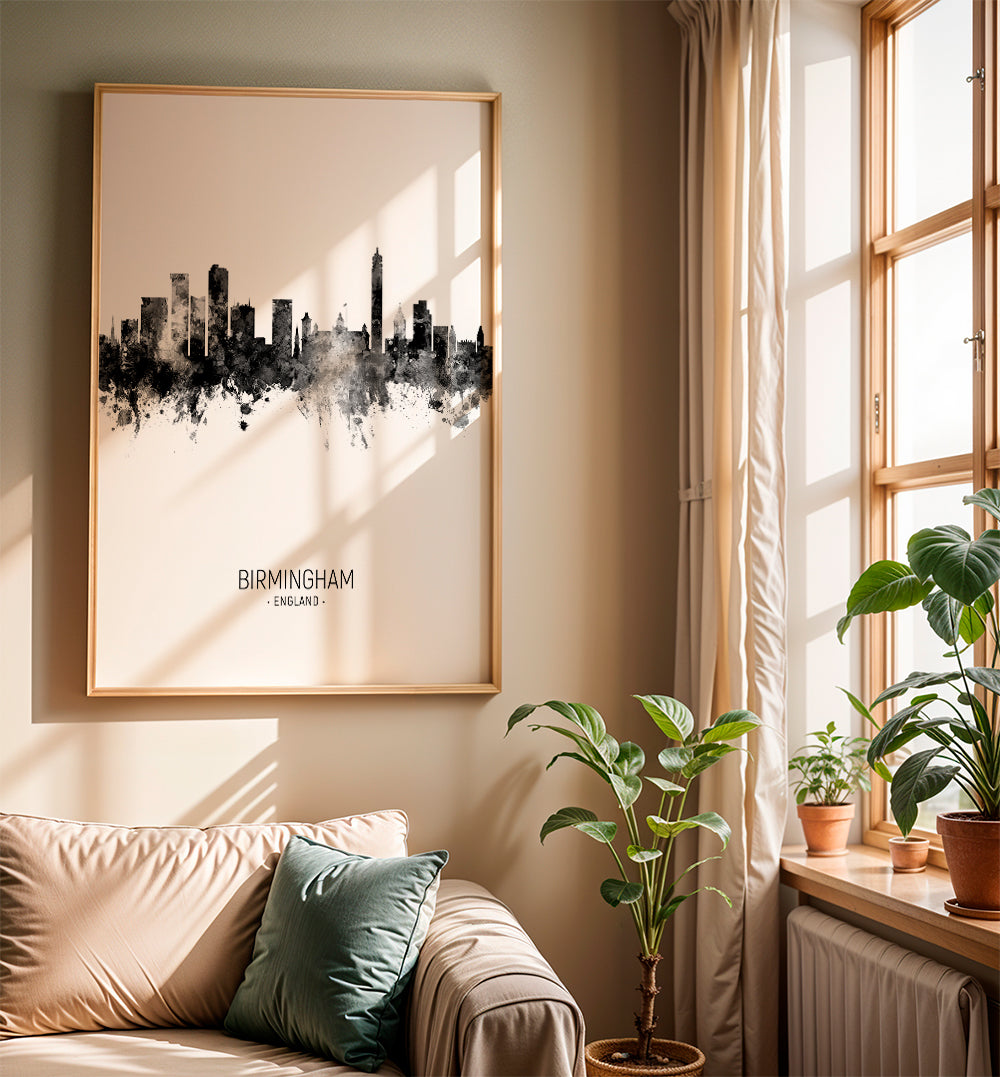 Tableau Birmingham skyline noir et blanc