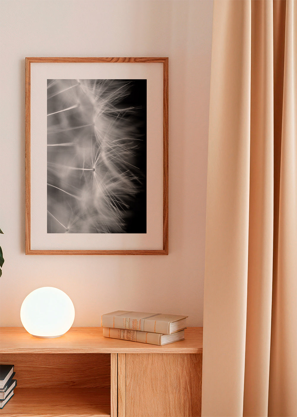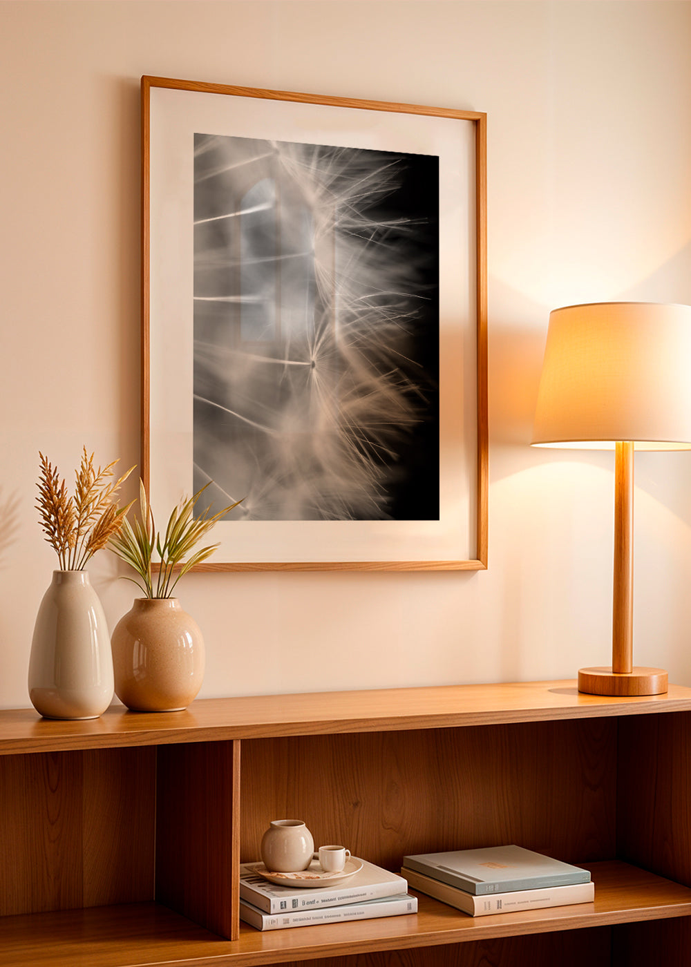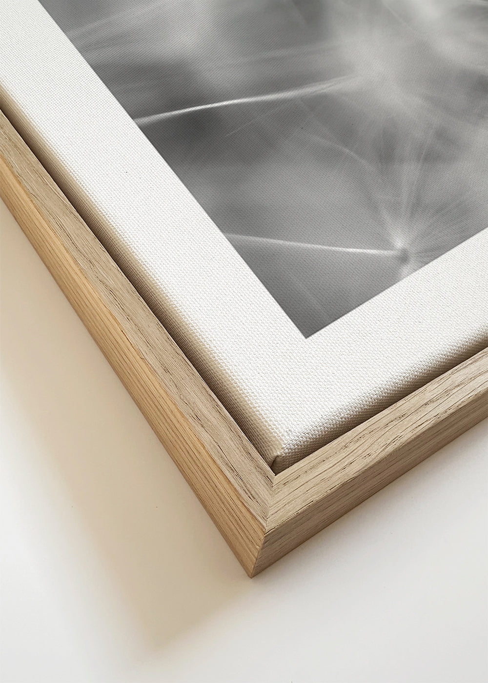 Si vous sélectionnez l'option passe-partout, nous ajouterons le tableau blanc mat au cadre, et nous réduirons le dessin de l'œuvre. Par exemple, si vous sélectionnez un tirage au format 50x70 cm, avec un cadre et un passe-partout couleur chêne, nous réduirons le dessin du tirage au format précédent (40x50cm). Ainsi, il s'adaptera parfaitement à la fenêtre intérieure du passe-partout.