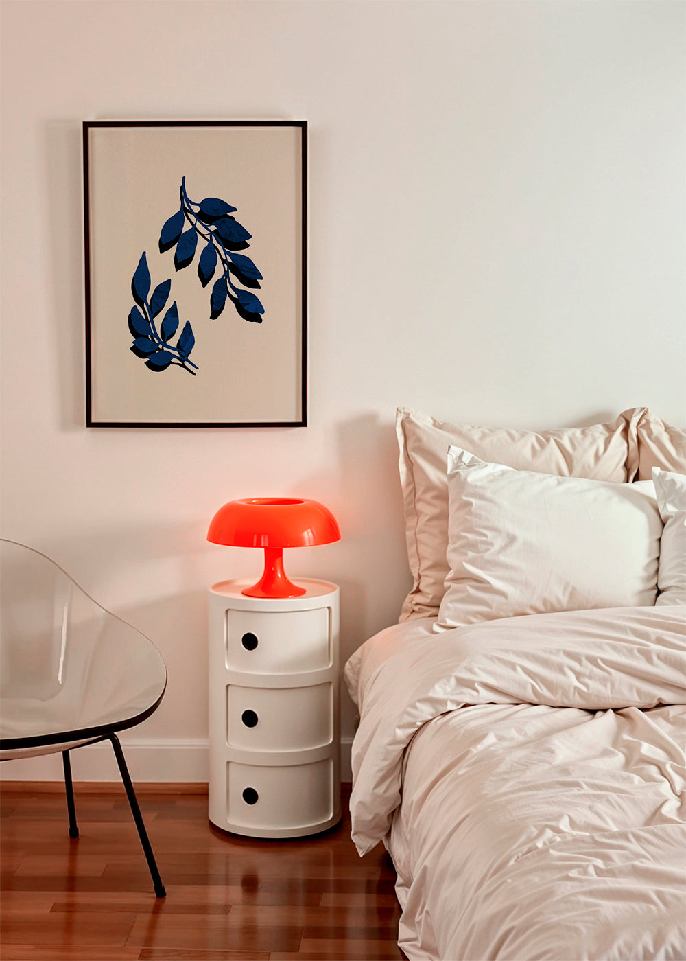 Une image de notre ensemble affiches feuille, avec les couleurs bleus, et en position portrait. C'est une illustration de style simple et propre, combinez-la avec d'autres illustrations pour obtenir une composition artistique. Élégance inspirée par l'art.