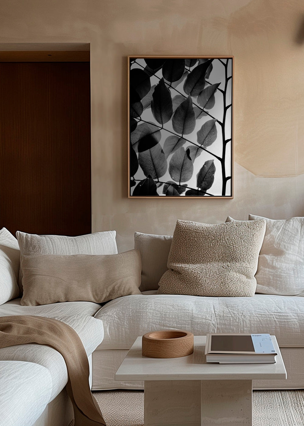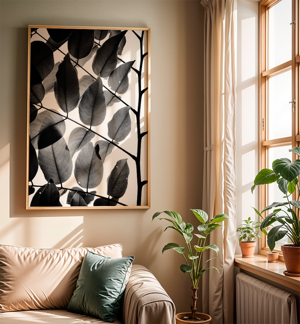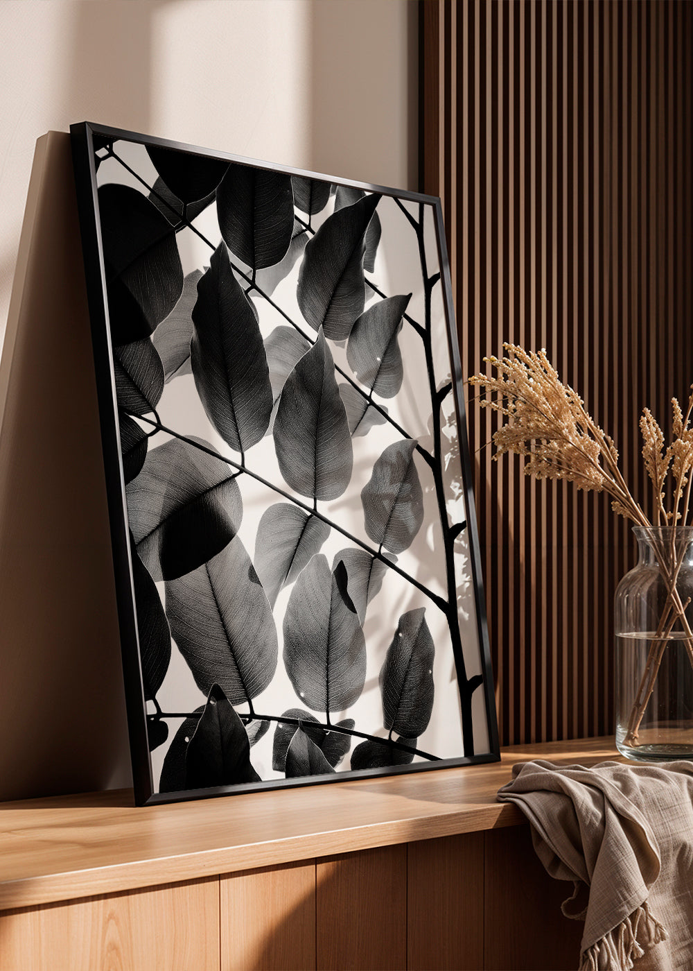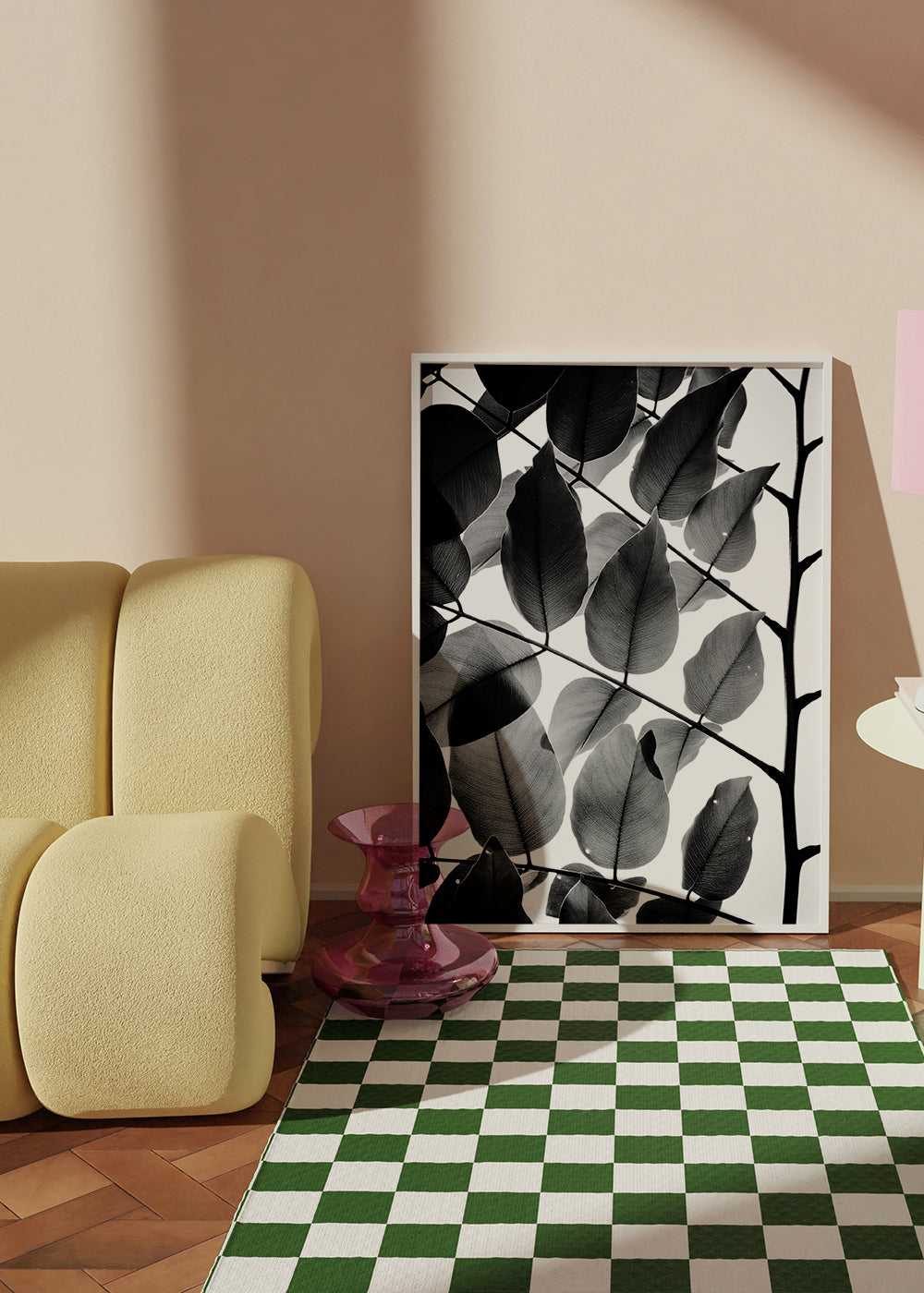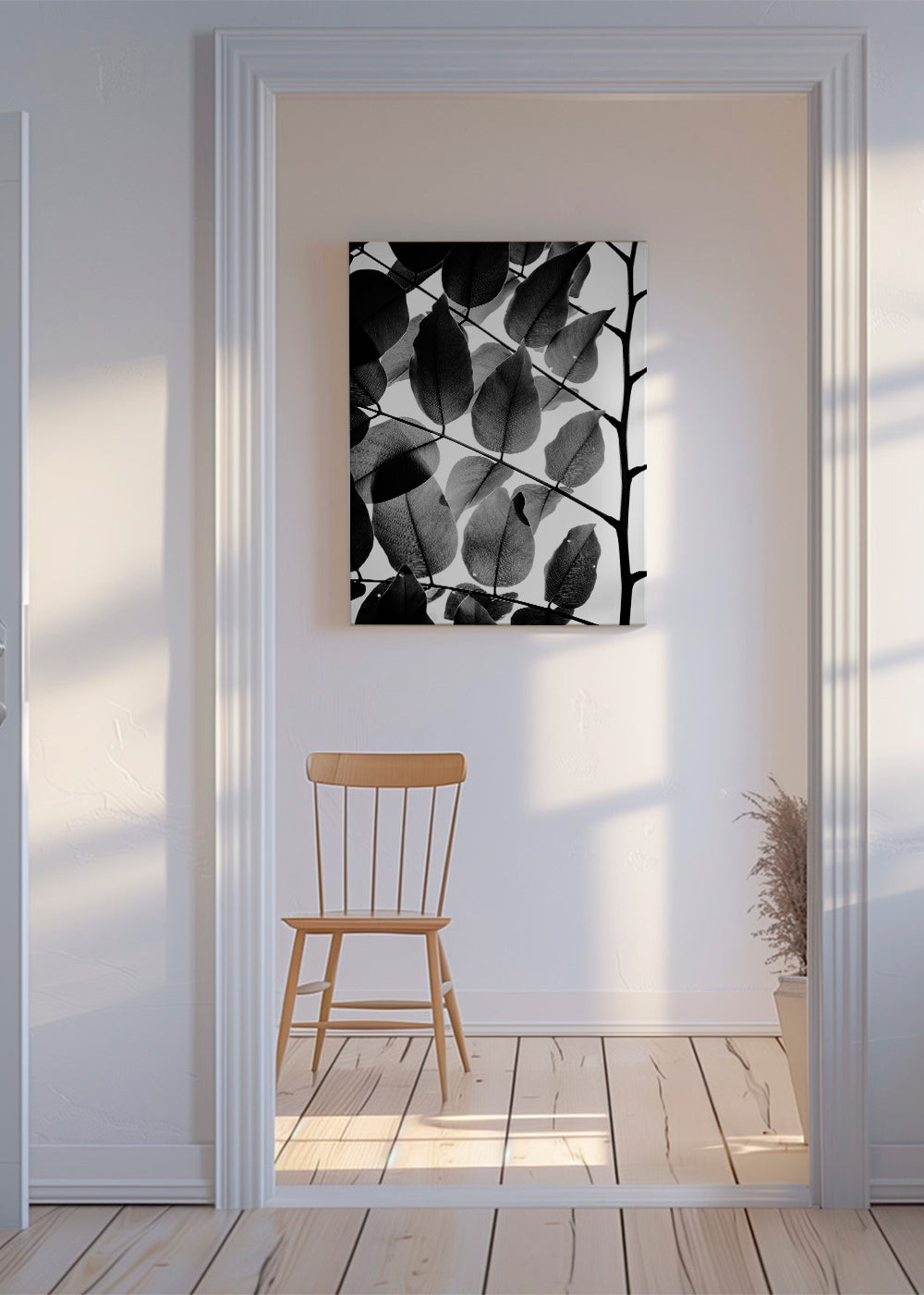 Beau modèle de notre catégorie affiches feuille, de la collection de l'artiste Tal Paz-Fridman, en couleurs monochromes, et en position portrait. Ce tableau botanique est parfait pour une décoration pleine de nature. Fraîcheur et originalité.