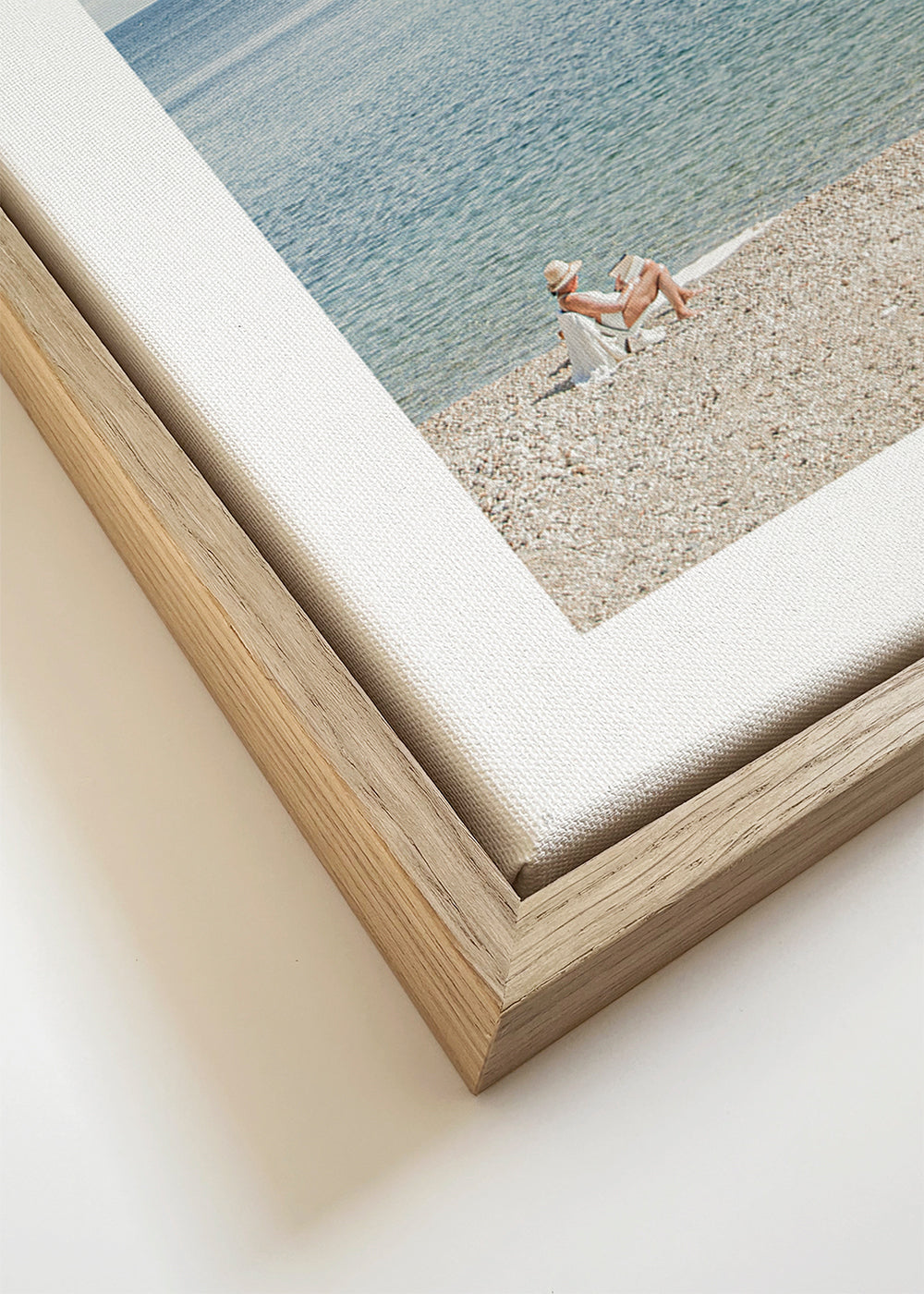 Si vous sélectionnez l'option passe-partout, nous ajouterons le tableau blanc mat au cadre, et nous réduirons le dessin de l'œuvre. Par exemple, si vous sélectionnez un tirage au format 50x70 cm, avec un cadre et un passe-partout couleur chêne, nous réduirons le dessin du tirage au format précédent (40x50cm). Ainsi, il s'adaptera parfaitement à la fenêtre intérieure du passe-partout.