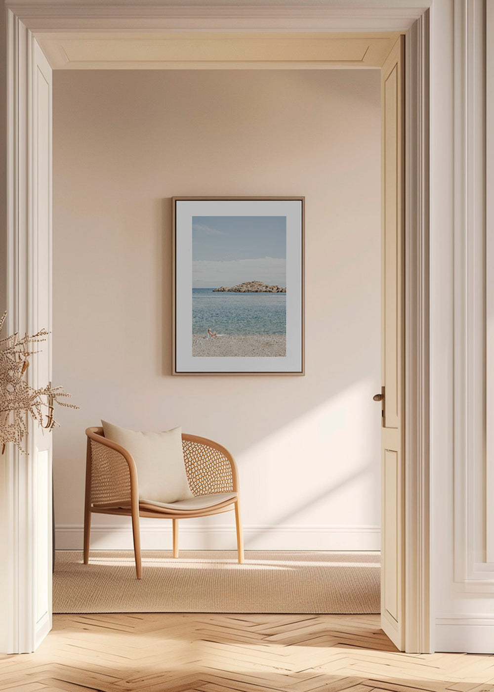 Un affiche de notre catégorie tableaux plage mer, appartenant à la collection de Ferran Feixas, en couleurs bleus, et pour mettre en position portrait. Le calme et la liberté transmis par les tableaux de paysages sont uniques. Des murs élégants pour des maisons chics.