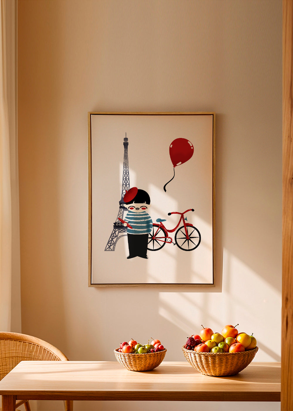 Un affiche de notre catégorie affiches vélo, appartenant à la collection de Kanzilue, avec des tonalités rouges, et à mettre en portrait. Combinez les skylines, photos et autres cartes des villes pour créer une composition adaptée aux voyageurs. Remplissez vos murs d'art.